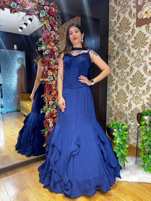 Be the first to review “AAIRA STYLISH ROYAL BLUE FISH CUT CROP TOP” Cancel reply