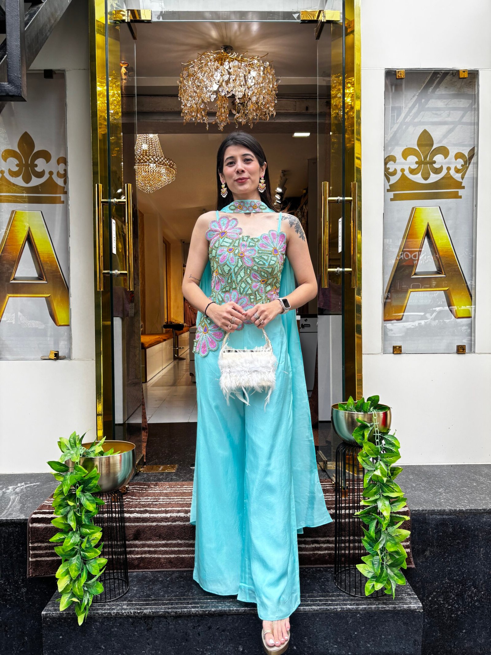 Be the first to review “AQUA BLOOM STYLISH PLAZZO SET WITH NECK BELT DUPATTA” Cancel reply