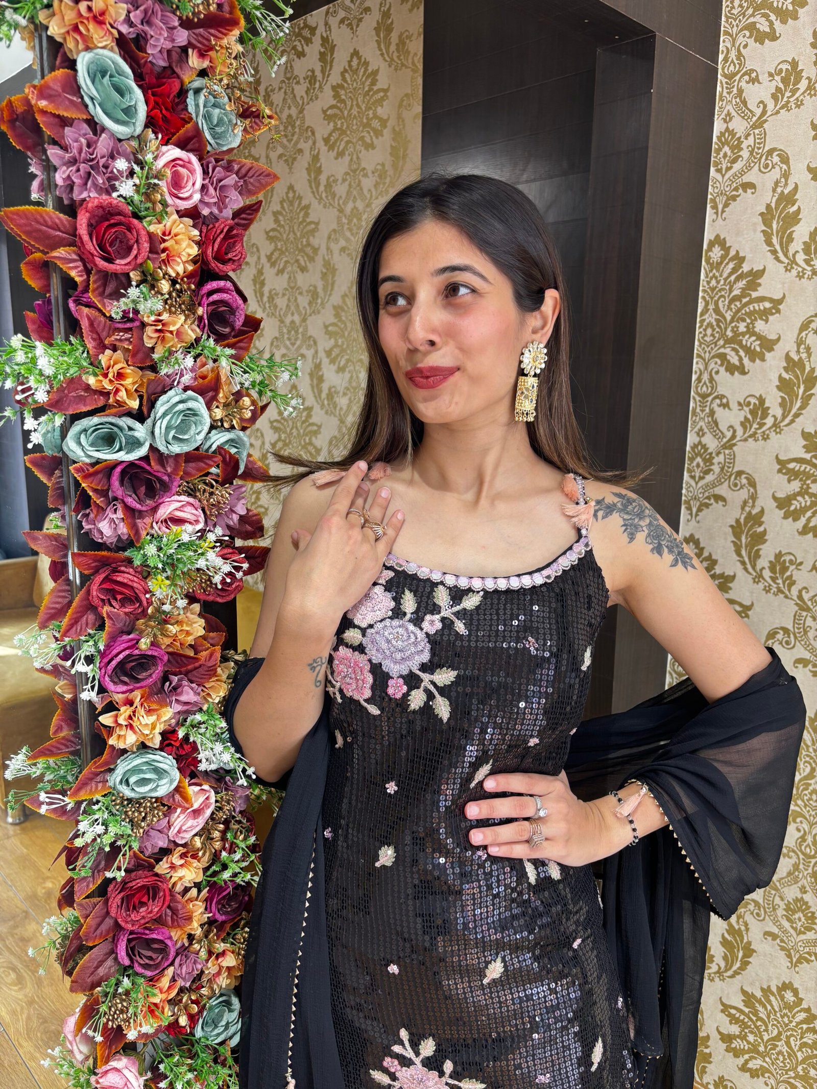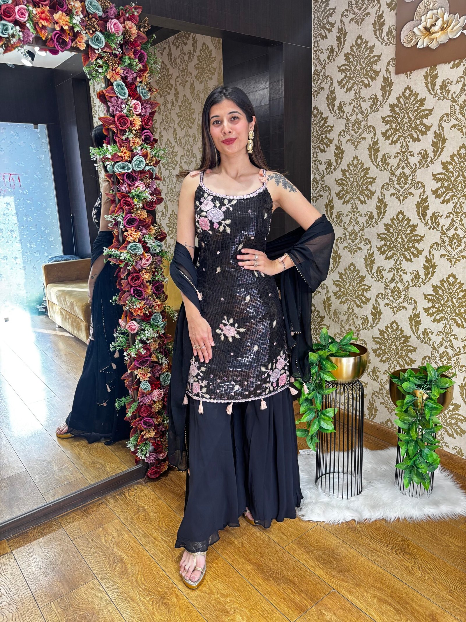 BLACK SPAGETTI PLAZZO SET WITH DUPATTA