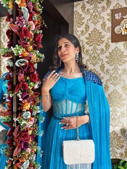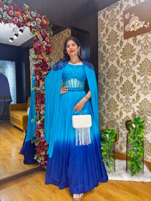 Be the first to review “BLUE OMBRE CORSET BLOUSE WITH HEAVY CAPE” Cancel reply