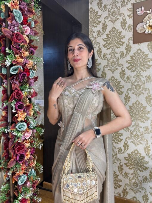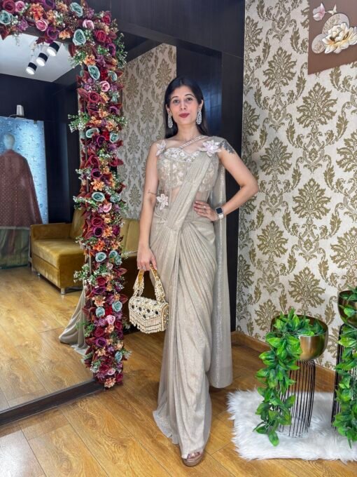 Be the first to review “CHAMPAGNE GLOW DRAPE READY TO WEAR SAREE” Cancel reply