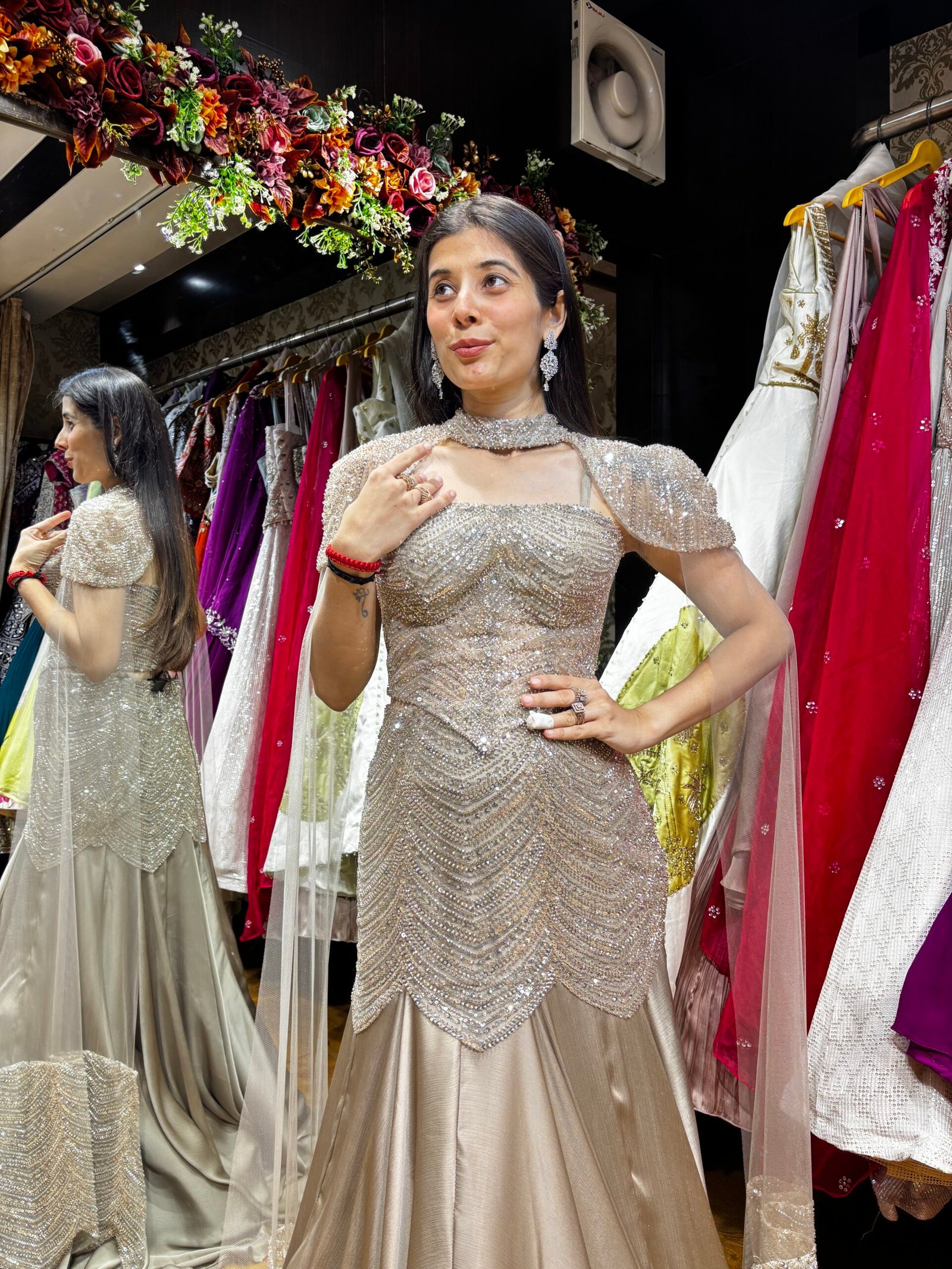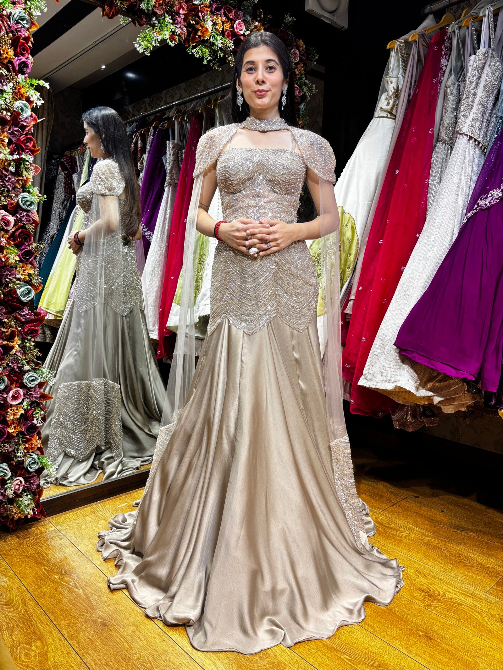 Be the first to review “CHAMPAGNE GOLD BLINGY DESIGNER MERMAID SKIRT WITH CAPE SET” Cancel reply