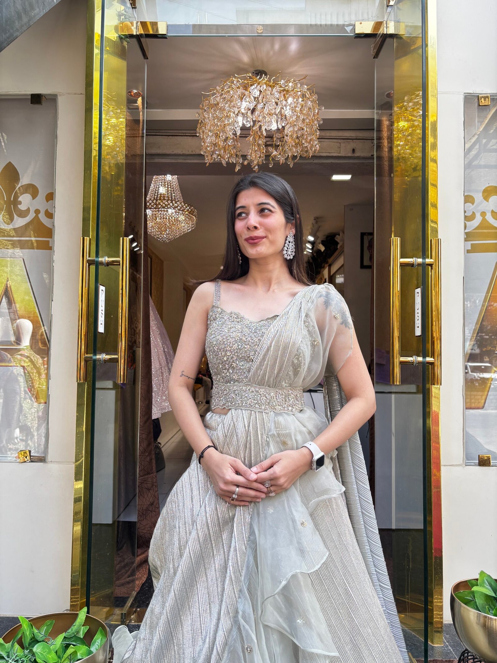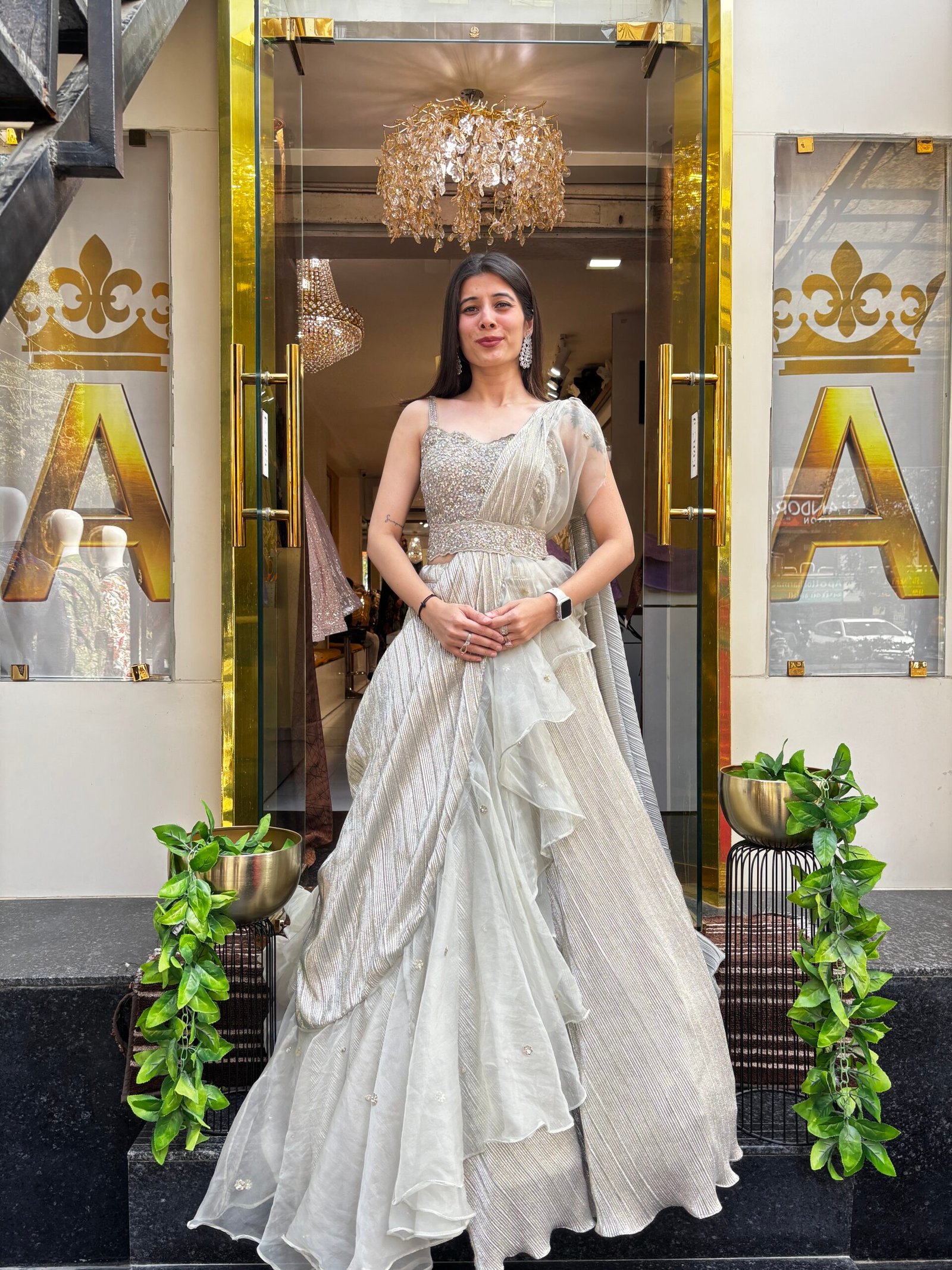 Be the first to review “CHANDRIKA CASCADE NOOR DRAPE LENGHA SAREE-GOLD IVORY” Cancel reply