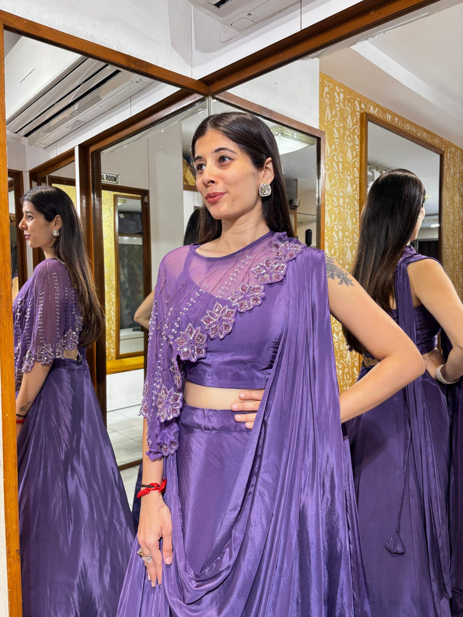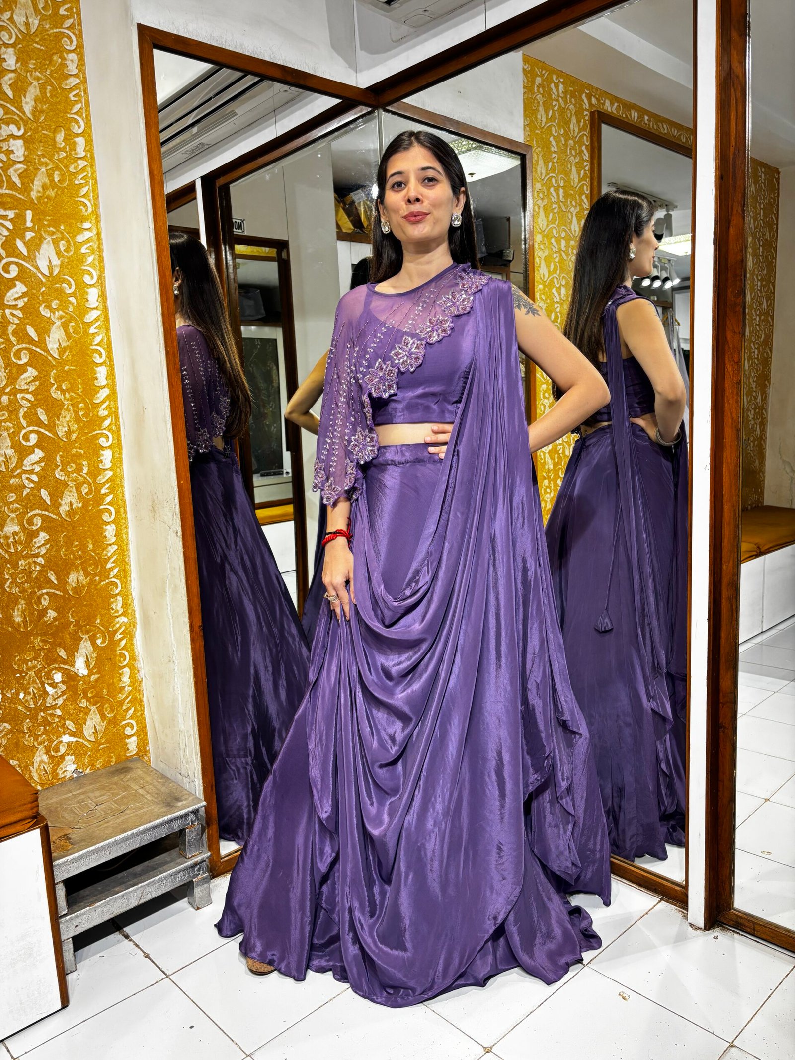 Be the first to review “DARK PURPLE LENGHA DRAPE WITH UNIQUE ONE SIDE CAPE” Cancel reply