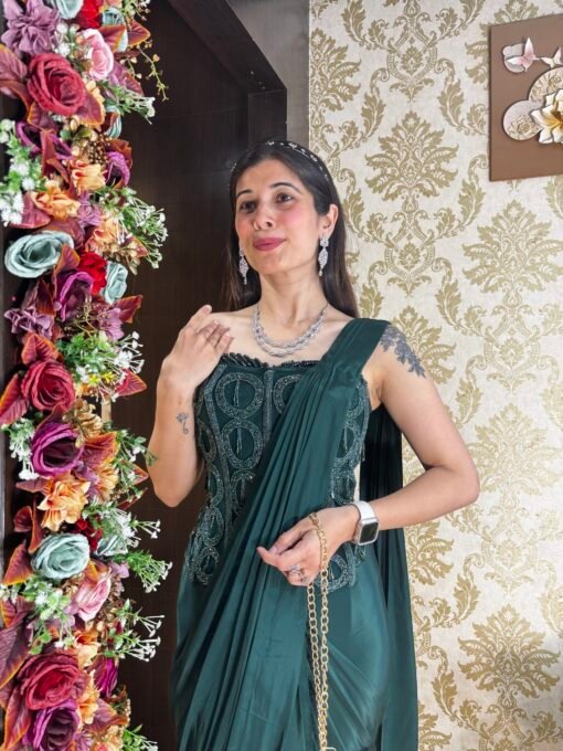 Be the first to review “EMERALD ELEGANCE CORSET DRAPE SAREE” Cancel reply
