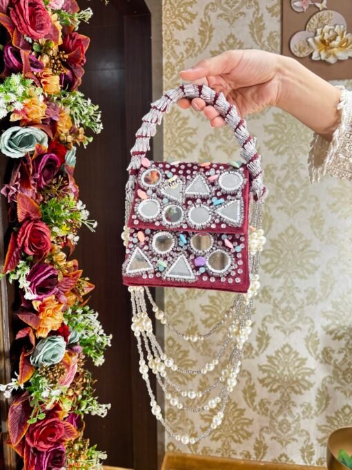 Be the first to review “GLITTERY JHOL MIRROR BAG-MAROON” Cancel reply