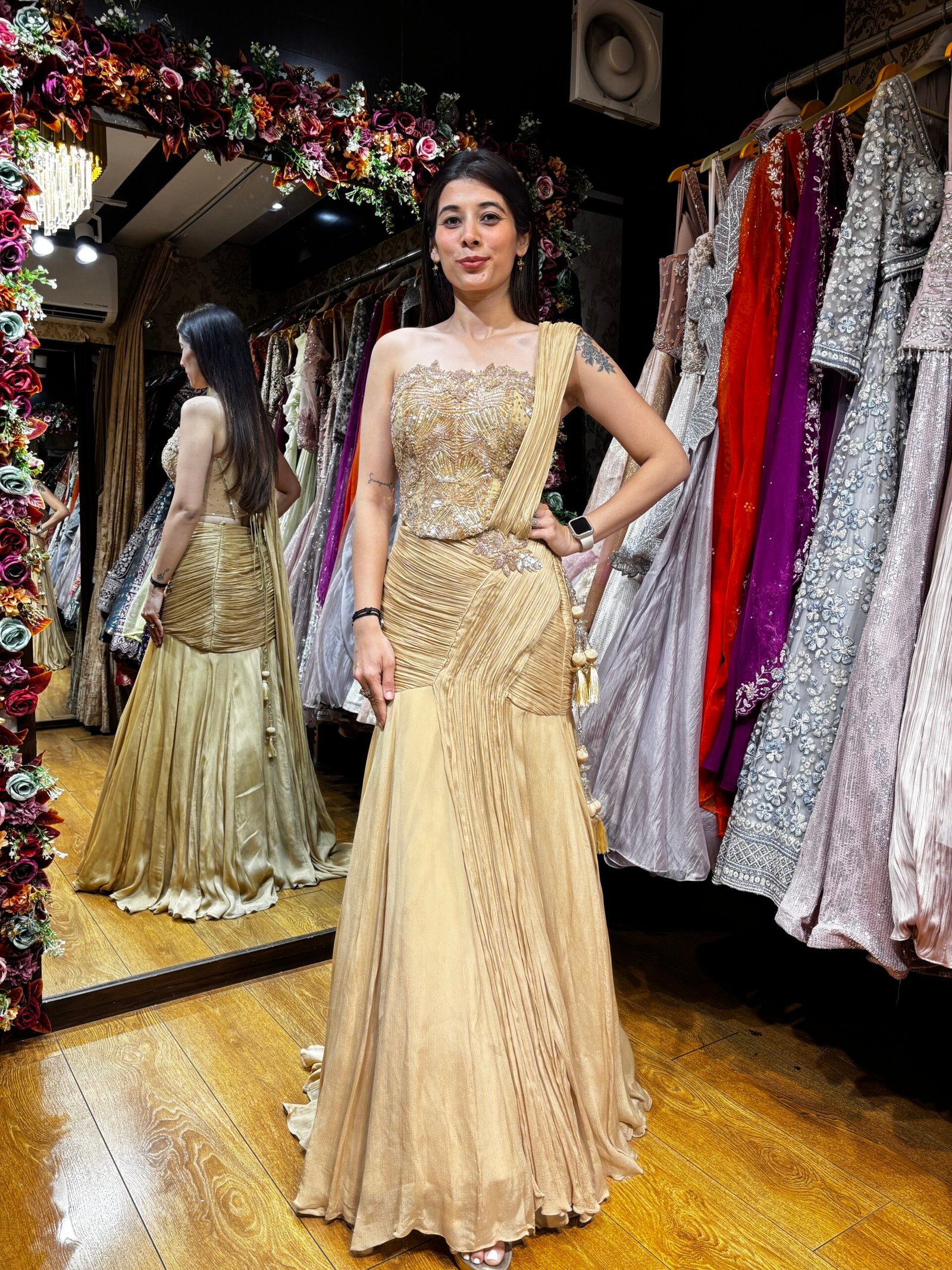 Be the first to review “GOLD DRAPE GLAM HEAVY MERMAID LENGHA SET” Cancel reply