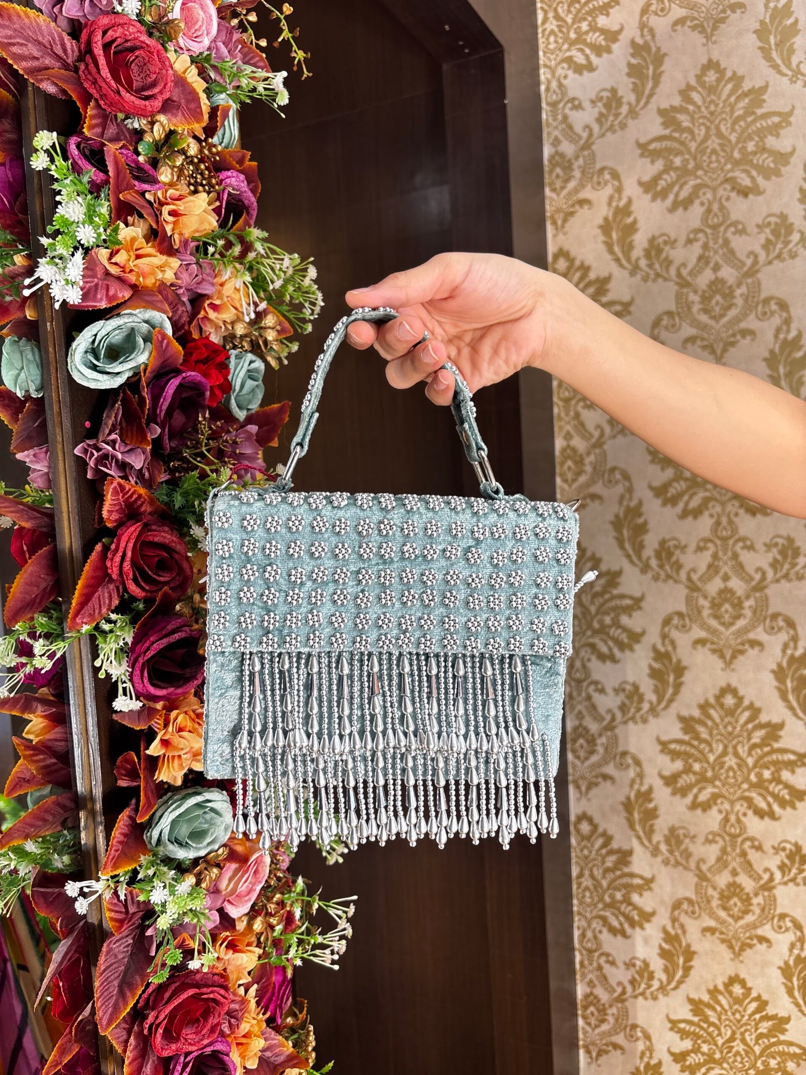 ICE GREEN PEARL STYLISH BOX HANDWORK BAG