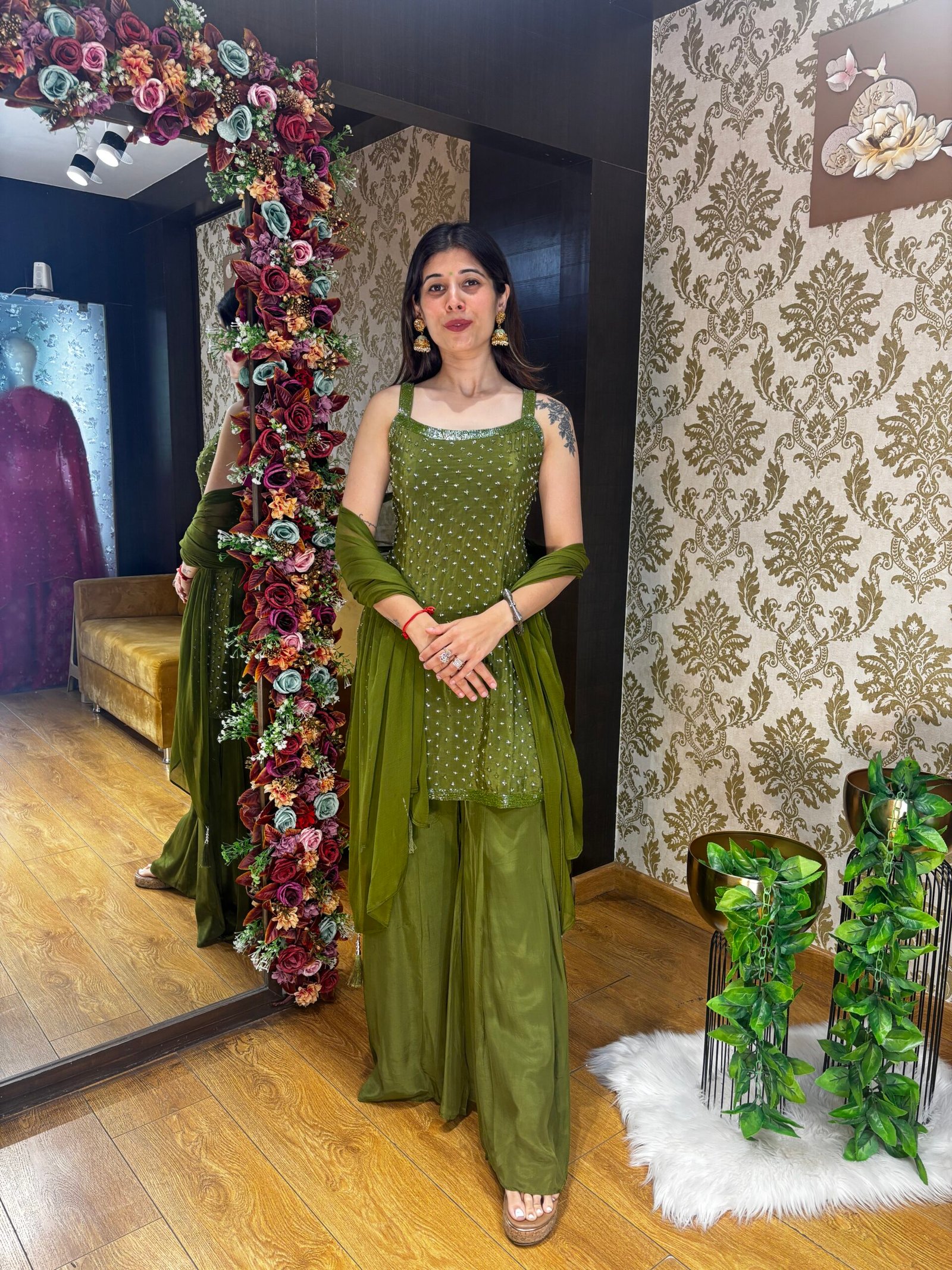 Be the first to review “ISHARA GREEN HEAVY PLAZZO SUIT WITH DUPATTA” Cancel reply