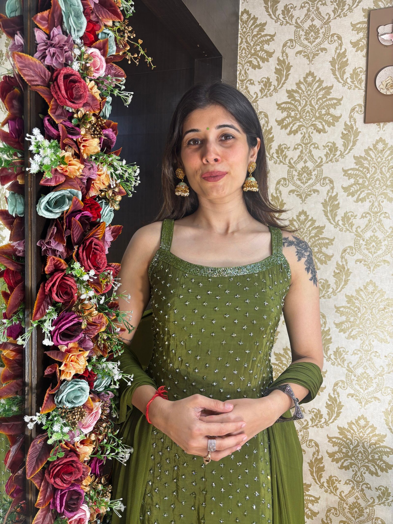 ISHARA GREEN HEAVY PLAZZO SUIT WITH DUPATTA