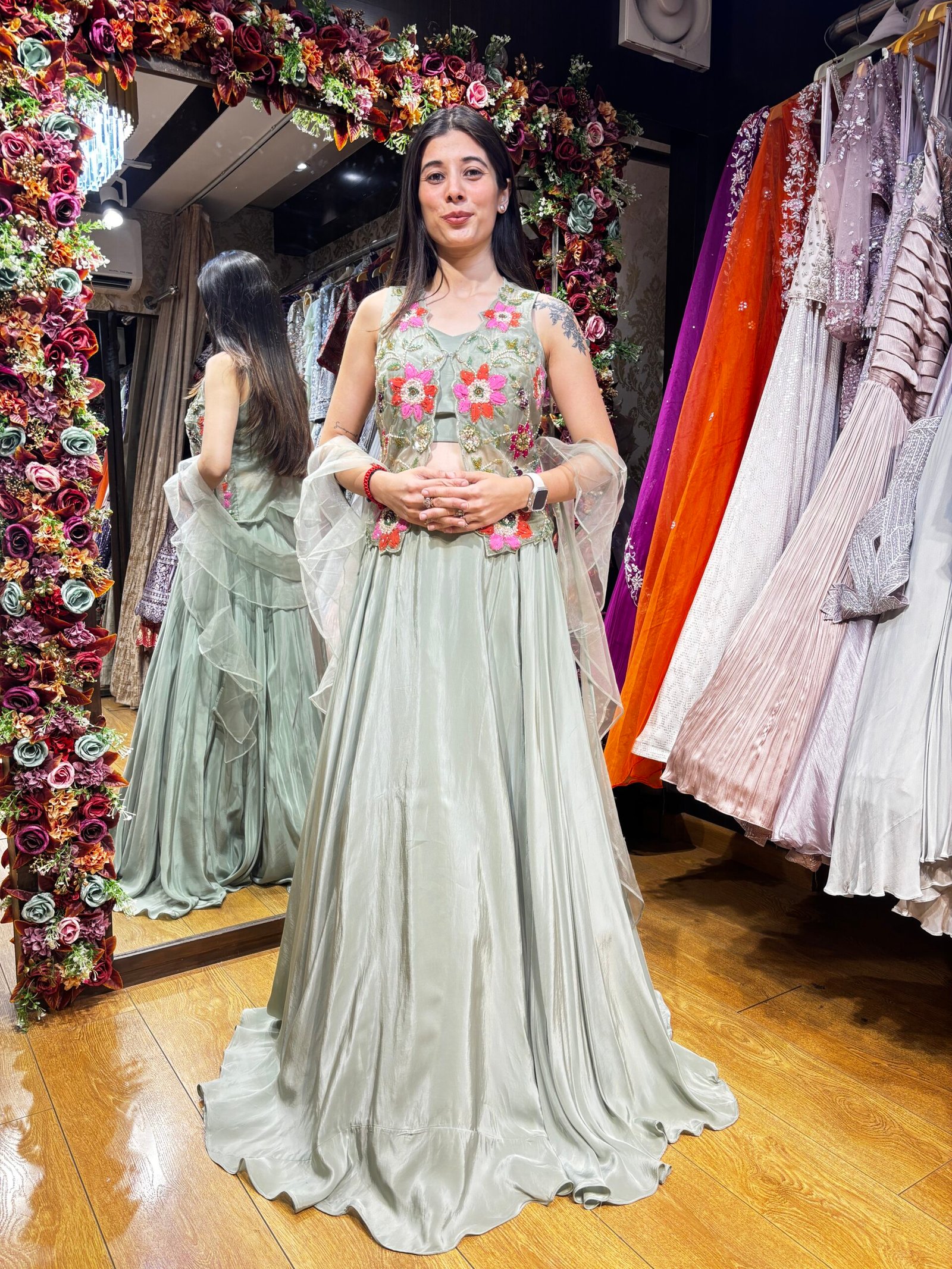 Be the first to review “LIGHT SAGE GREEN AFREEN JACKET LENGHA CHOLI” Cancel reply