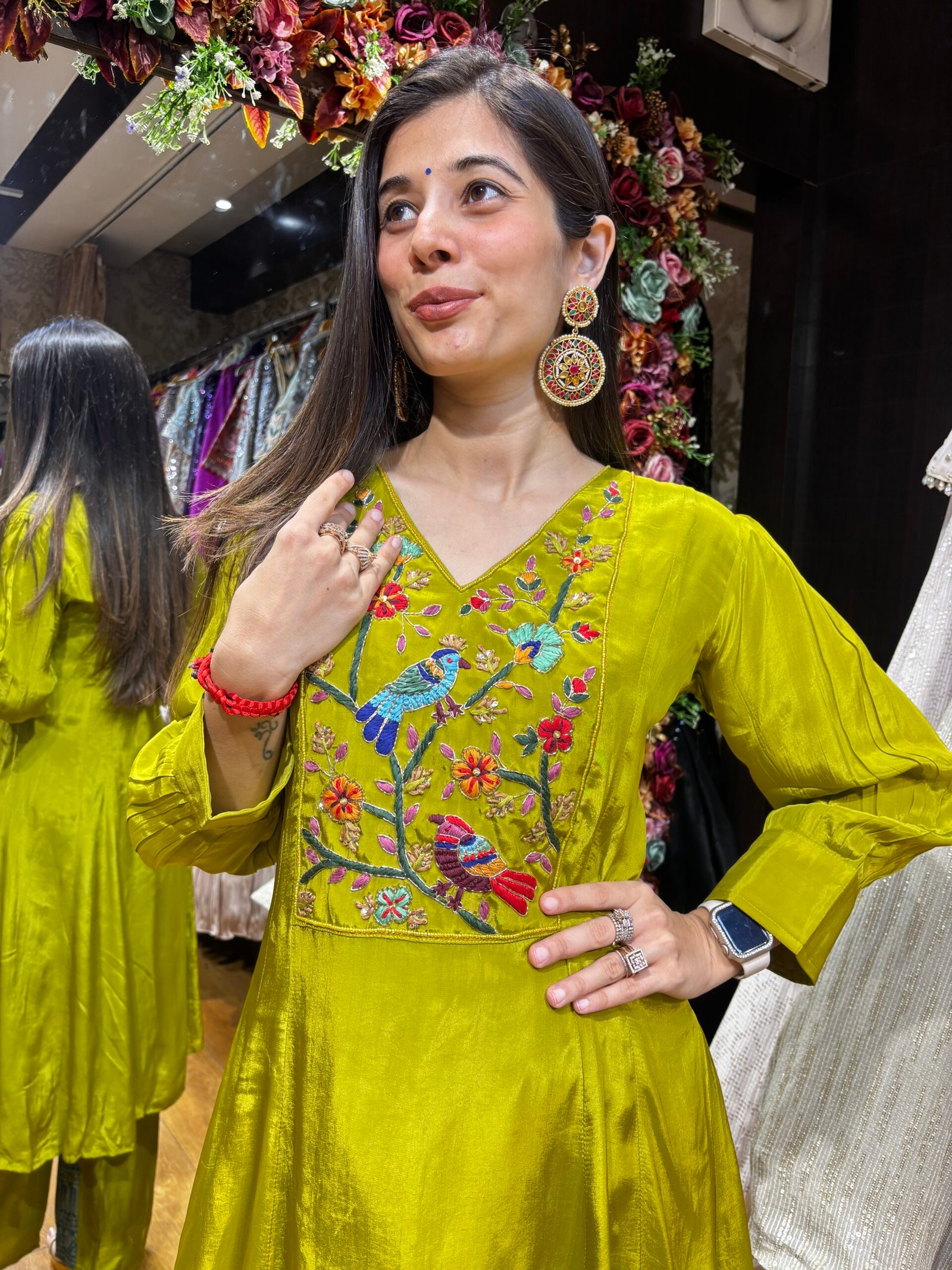 LIRIL PARROT DESIGNER CO-ORD SET WITH WORK ON PANTS