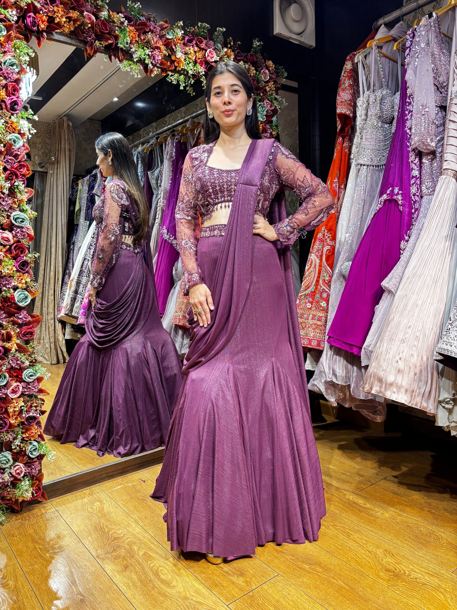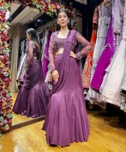 Be the first to review “MAGENTA WINE MERMAID STYLE DRAPE LENGHA WITH FULL SLEEVES” Cancel reply