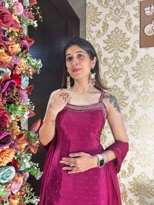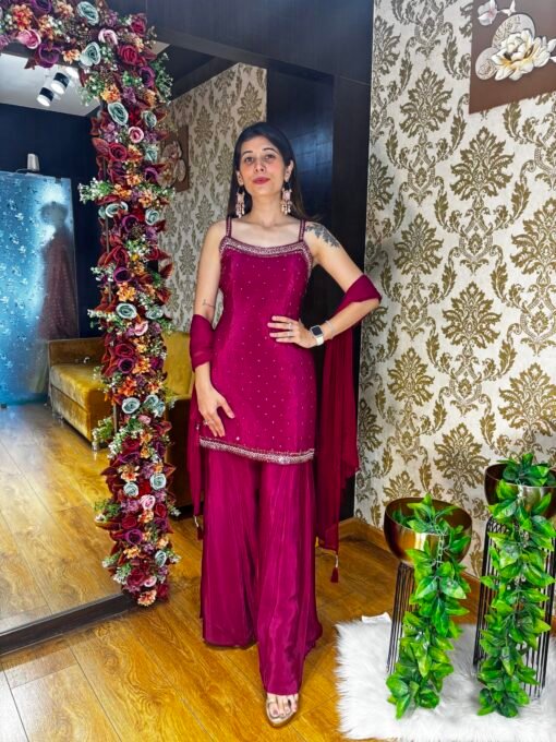 Be the first to review “MAROON CLASSY SPAGETTI PLAZZO SET WITH NECK BELT DUPATTA” Cancel reply