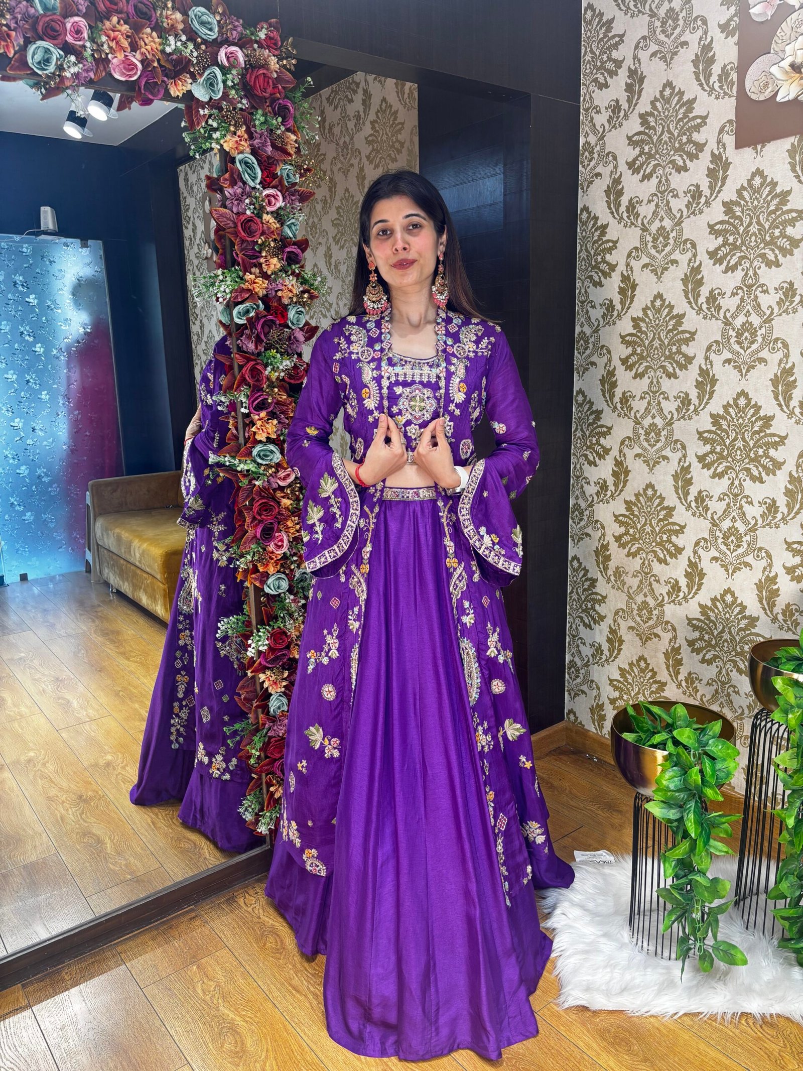 Be the first to review “MASAYA HEAVY SKIRT BLOUSE WITH FULL HAND WORK JACKET-DARK PURPLE” Cancel reply