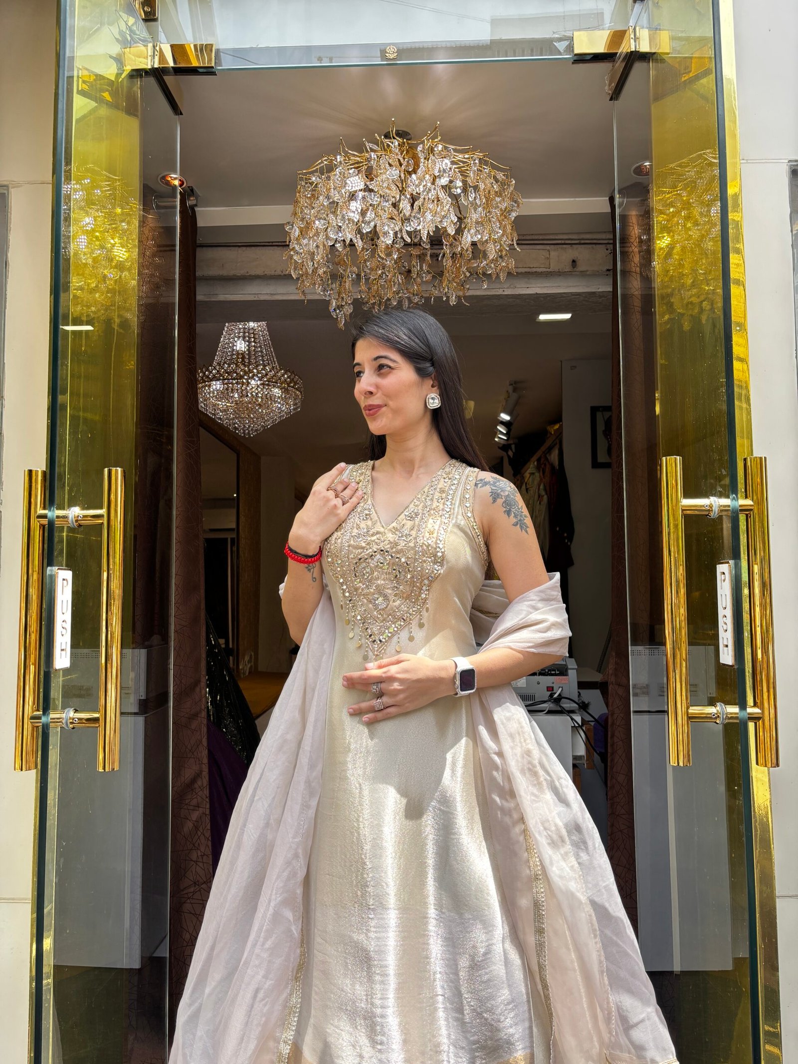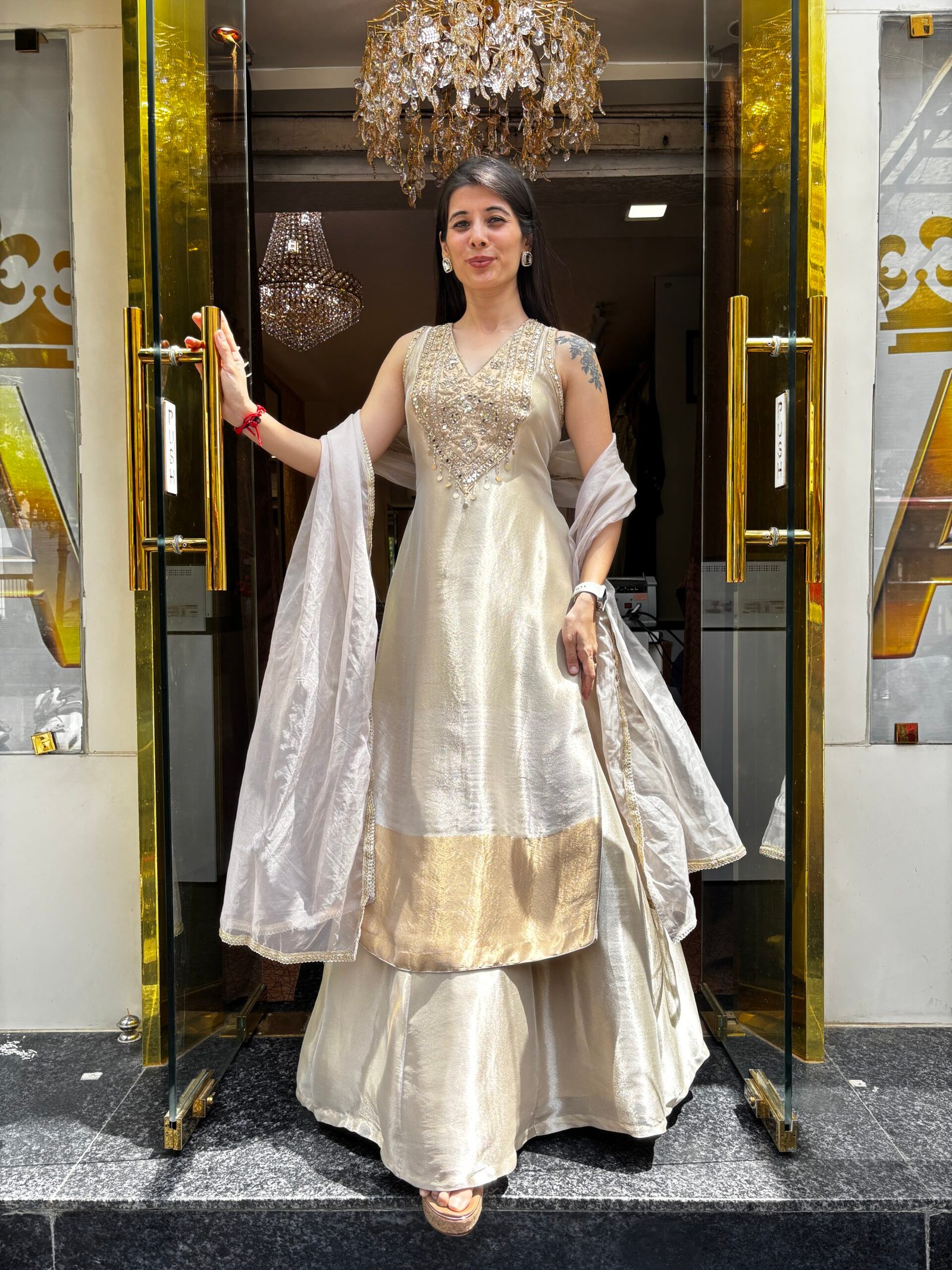 MASTANI IVORY GOLD STUNNING GLASS TISSUE LENGHA WITH LONG TOP