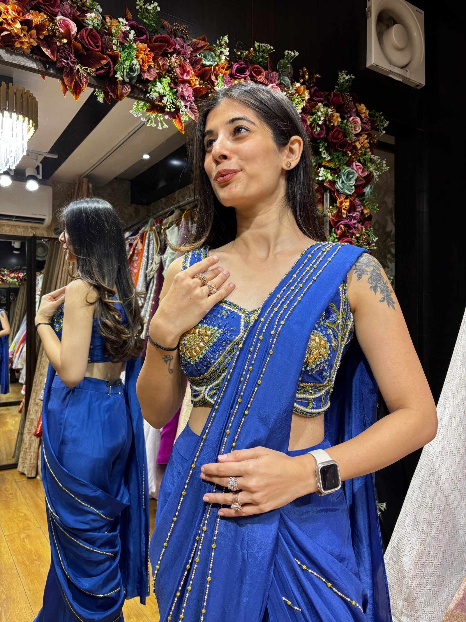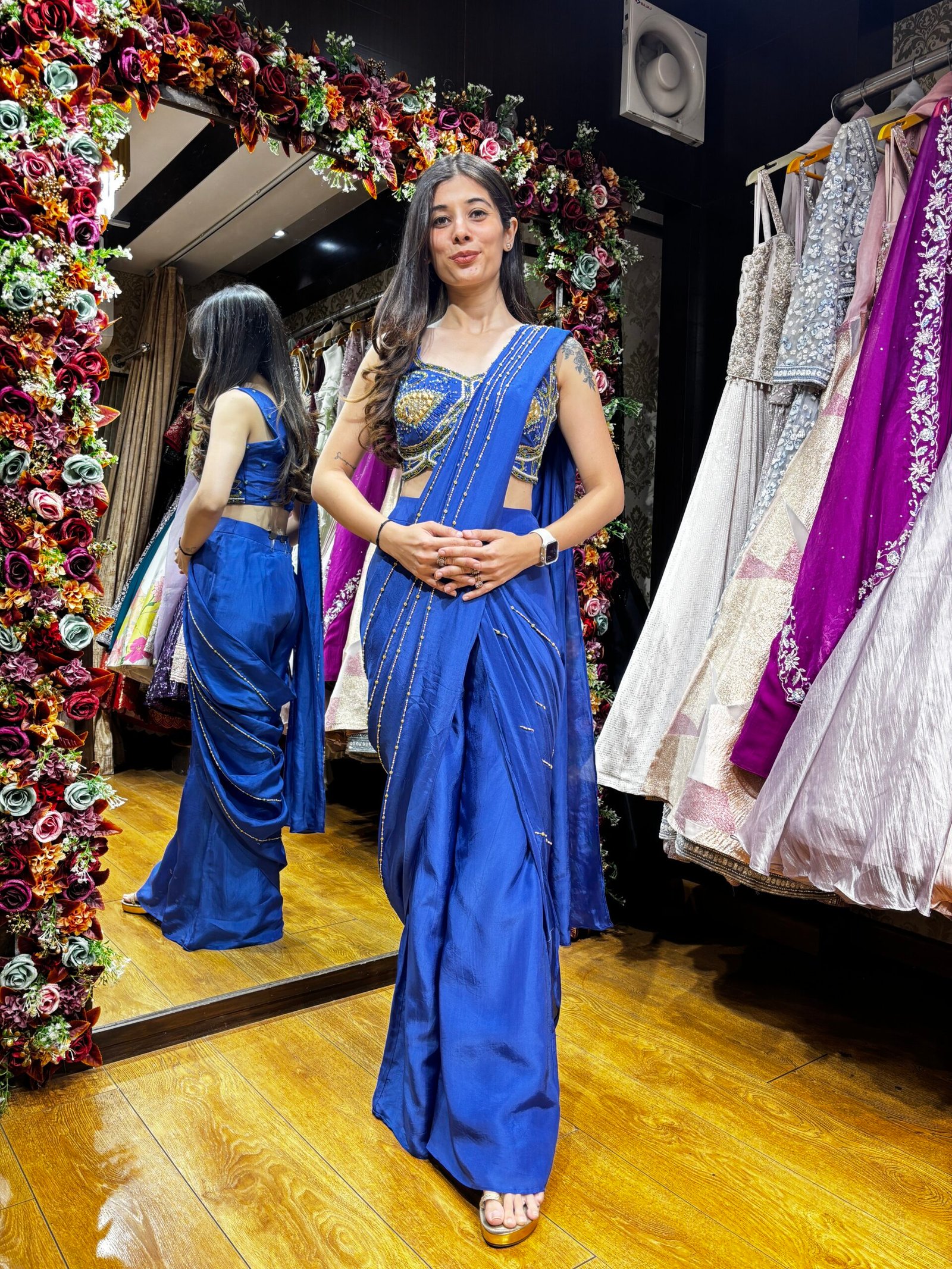 Be the first to review “MAYA STUNNING PLAZZO ELECTRIC BLUE DRAPE SAREE” Cancel reply