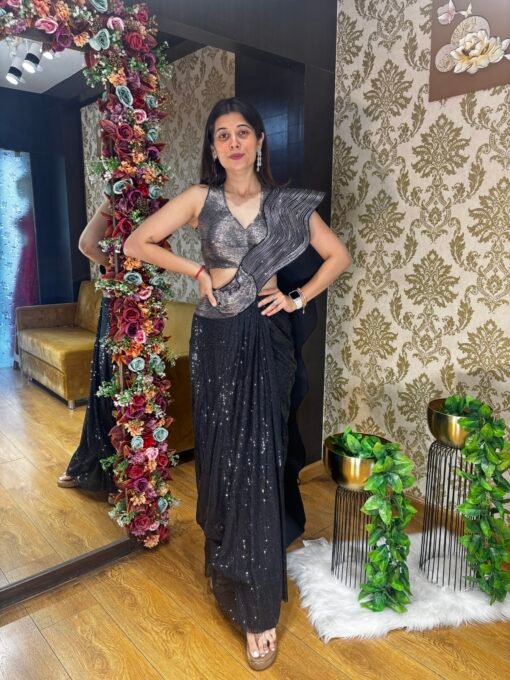 Be the first to review “MIDNIGHT SPARKLE PRE-DRAPED SAREE-BLACK” Cancel reply