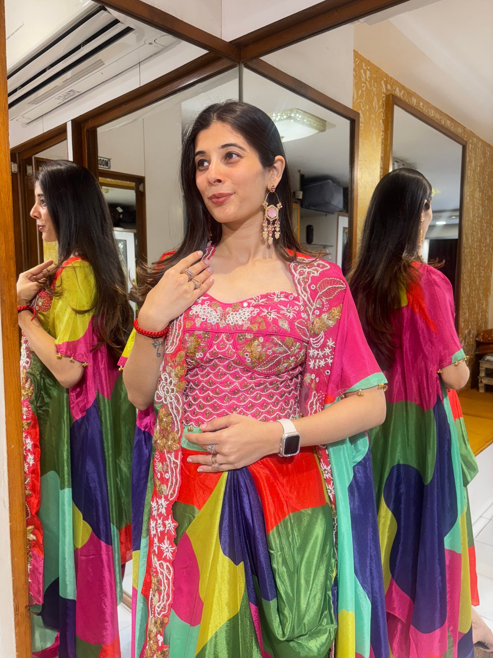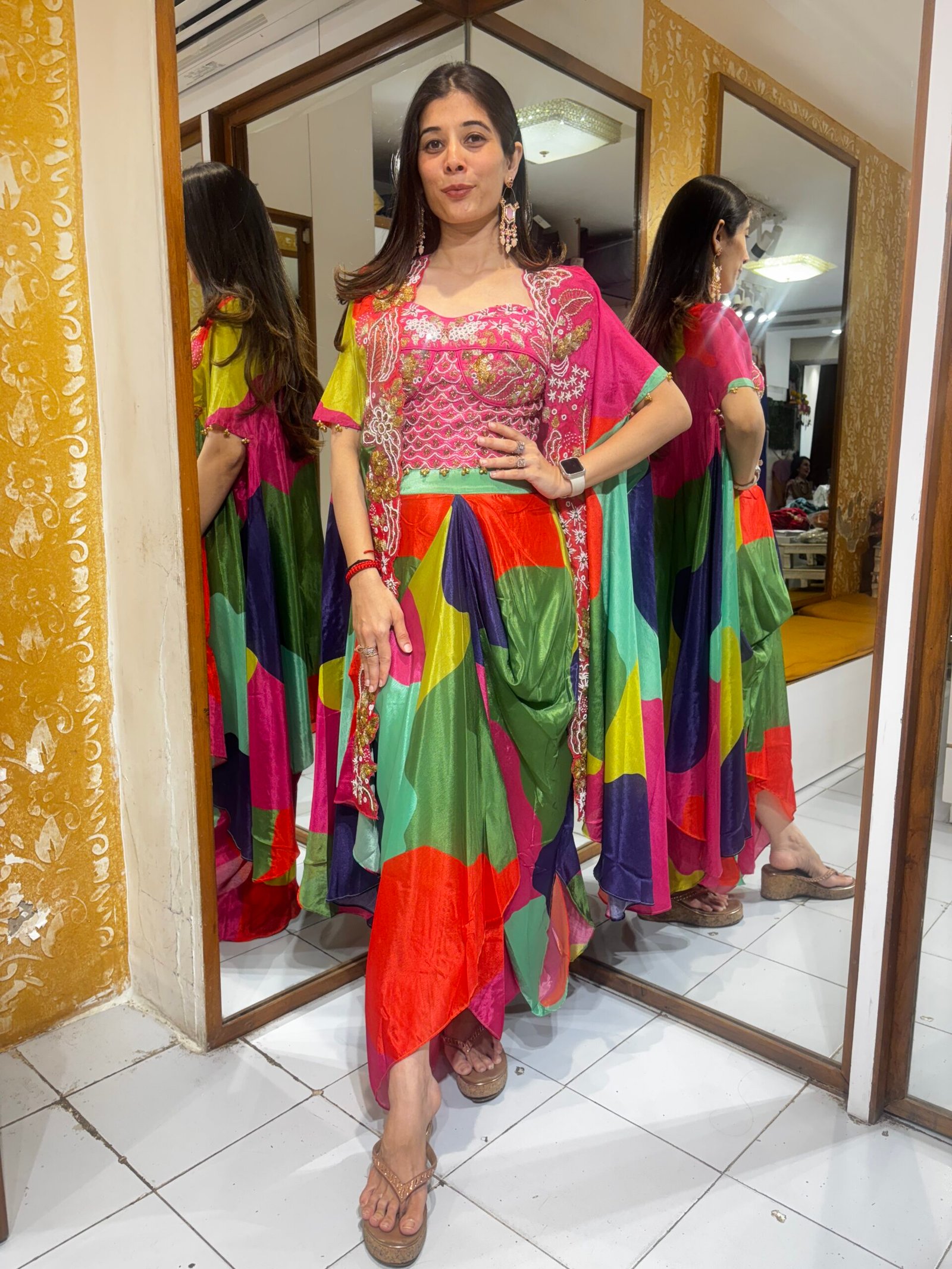 Be the first to review “MULTI BANJARA COWL SKIRT SET WITH DRAMATIC CAPE” Cancel reply