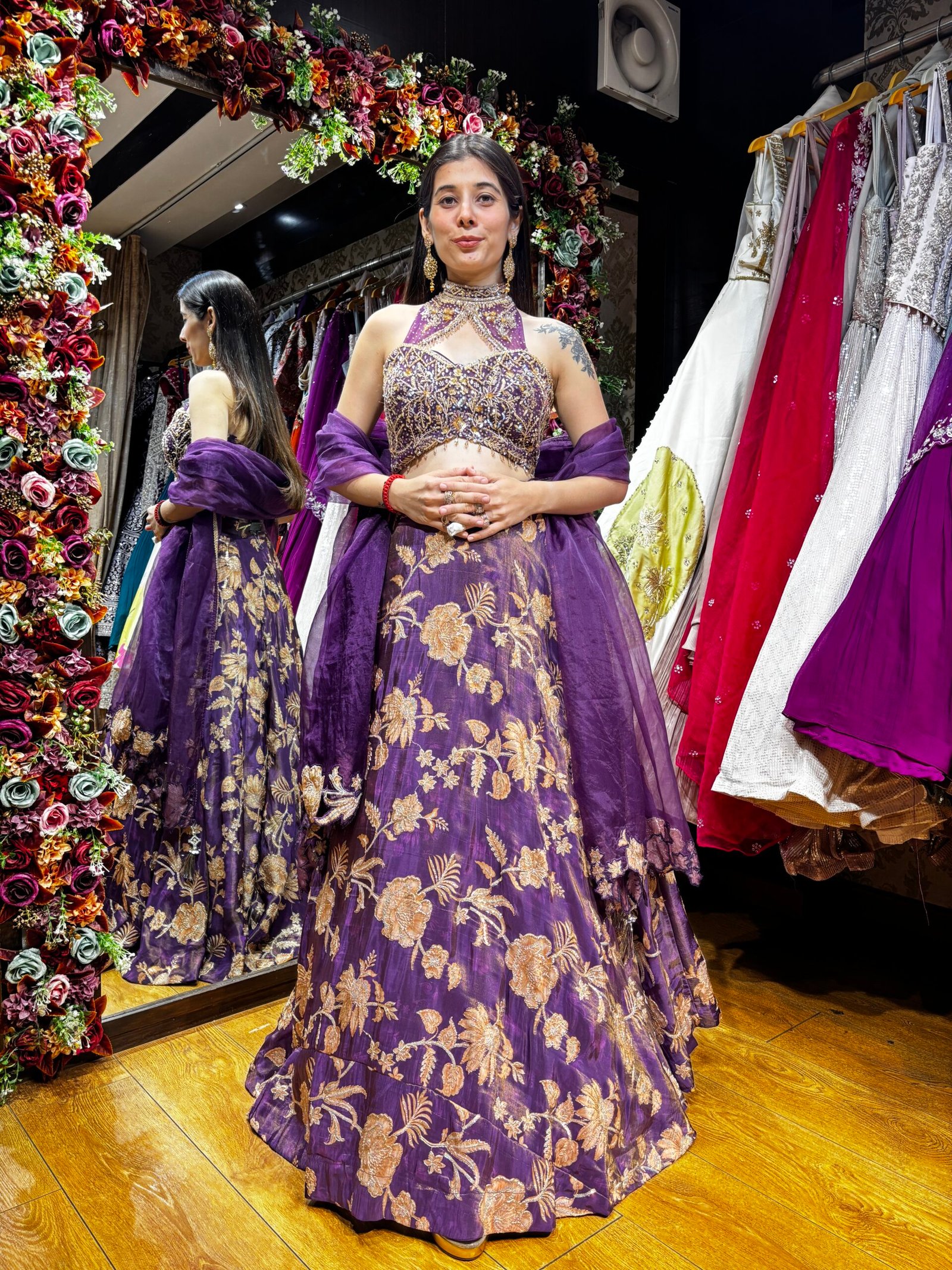 NOOR FLORAL LENGHA CHOLI WITH DESIGNER BLOUSE-DARK PURPLE