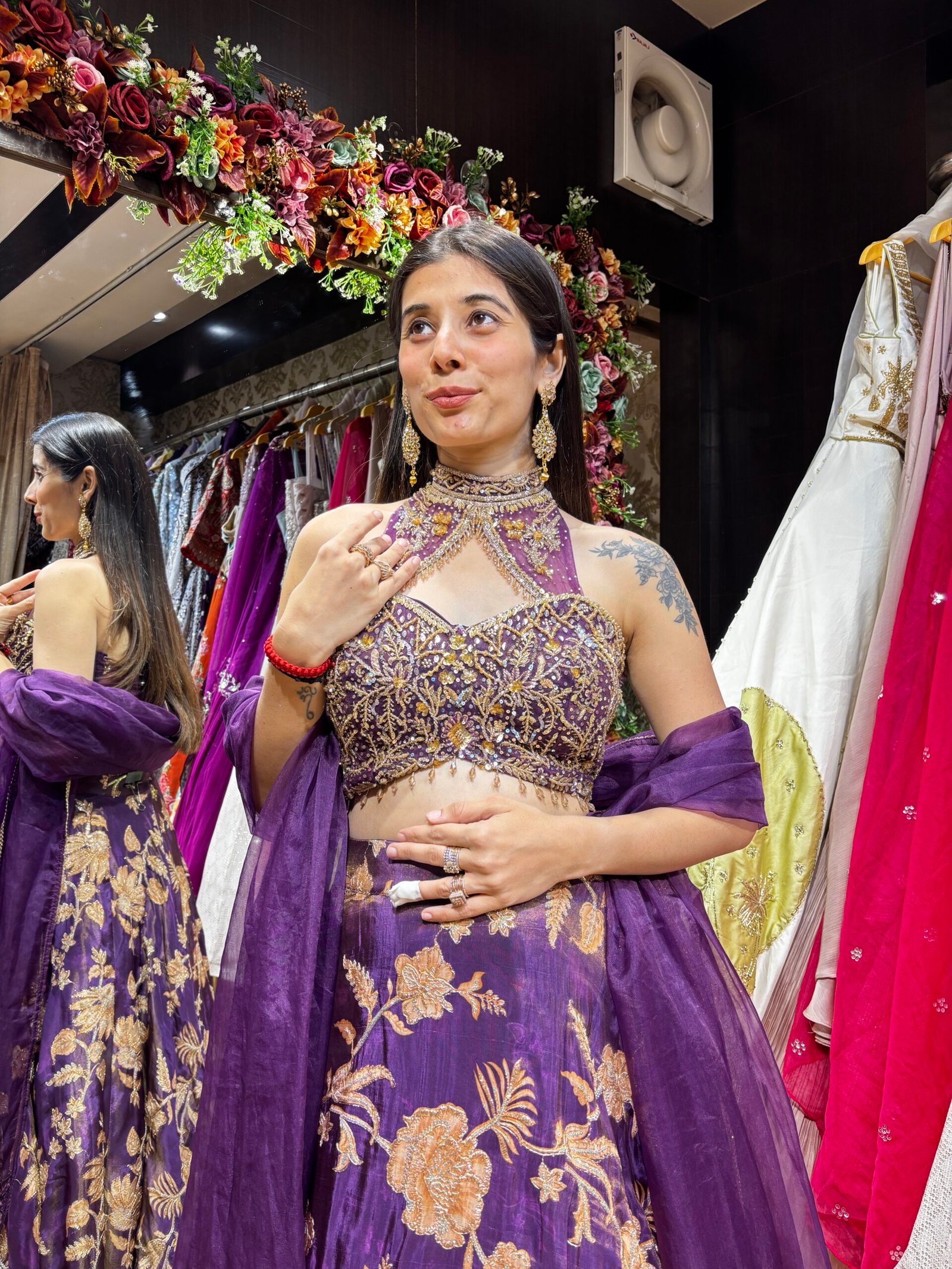 Be the first to review “NOOR FLORAL LENGHA CHOLI WITH DESIGNER BLOUSE-DARK PURPLE” Cancel reply