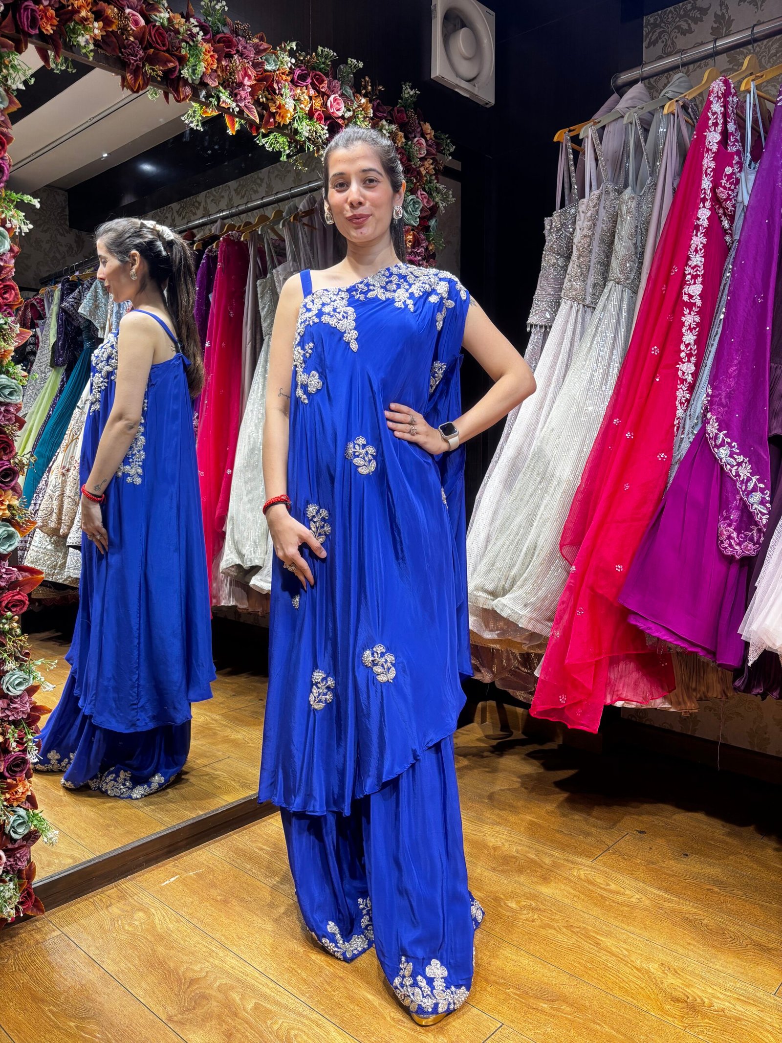 NOORI ELECTRIC BLUE PLAZZO WITH ONE SIDE SHOULDER CAPE