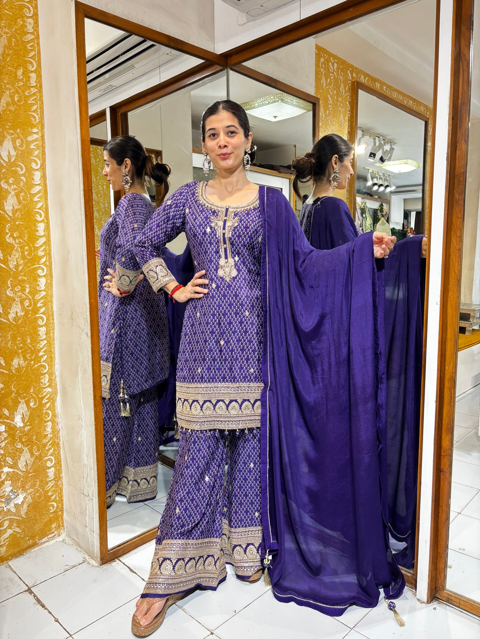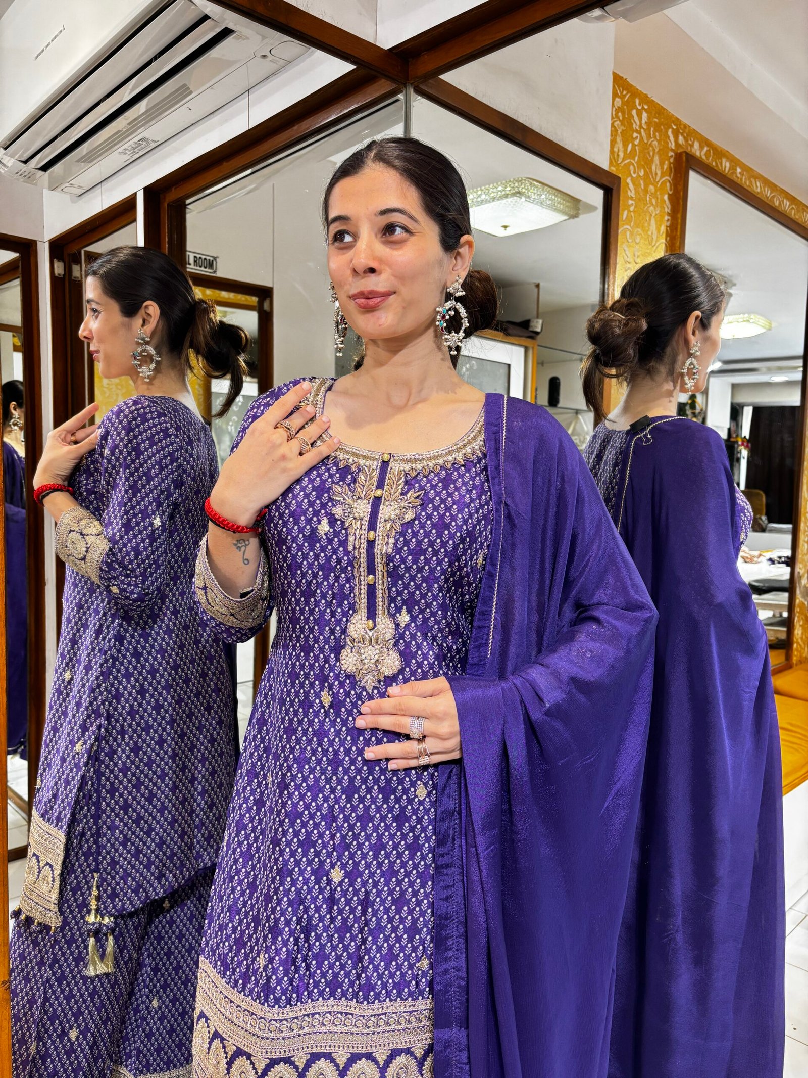 PHOOLKAR DARK PURPLE BELL BOTTOM HEAVY SUIT