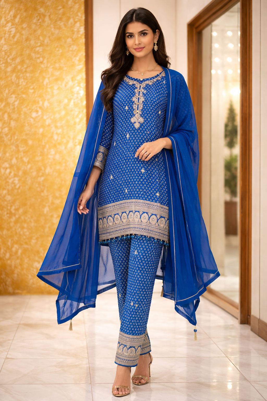 PHOOLKARI HEAVY BELLBOTTOM SUIT-DARK AQUA BLUE