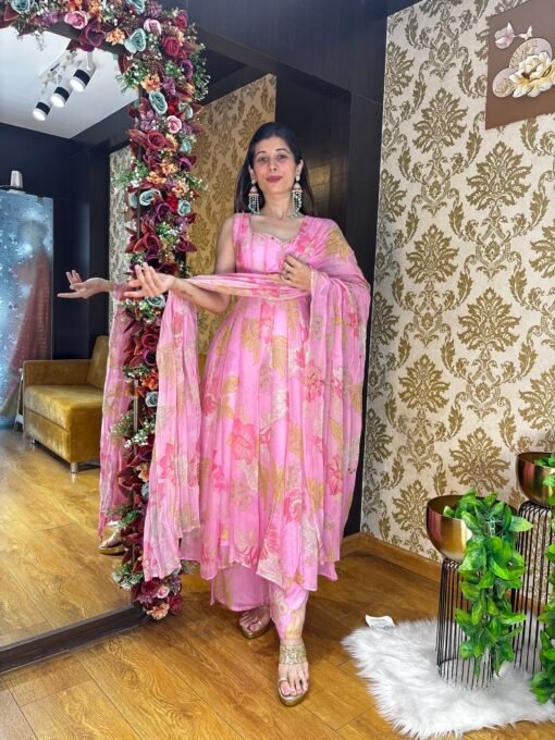 Be the first to review “PIHA STYLISH BABY PINK FLORAL ANARKALI SUIT” Cancel reply