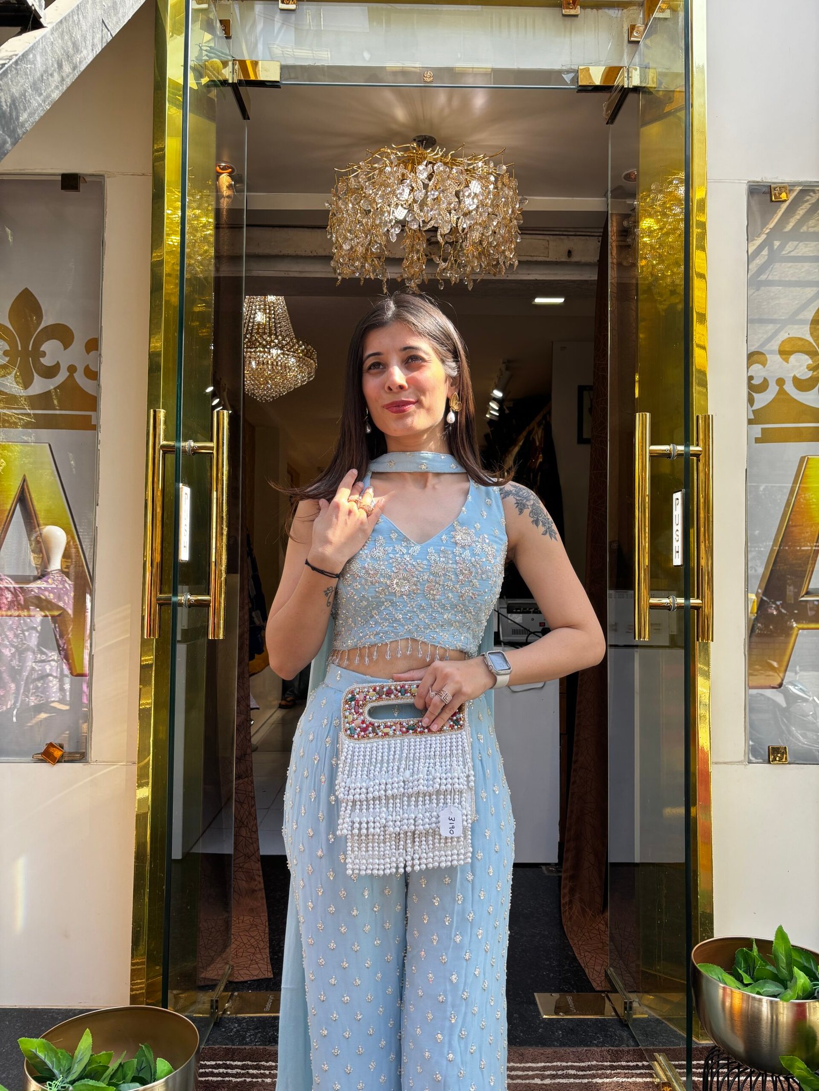 Be the first to review “POWDER BLUE HEAVY PLAZZO SET WITH NECK BELT DUPATTA” Cancel reply