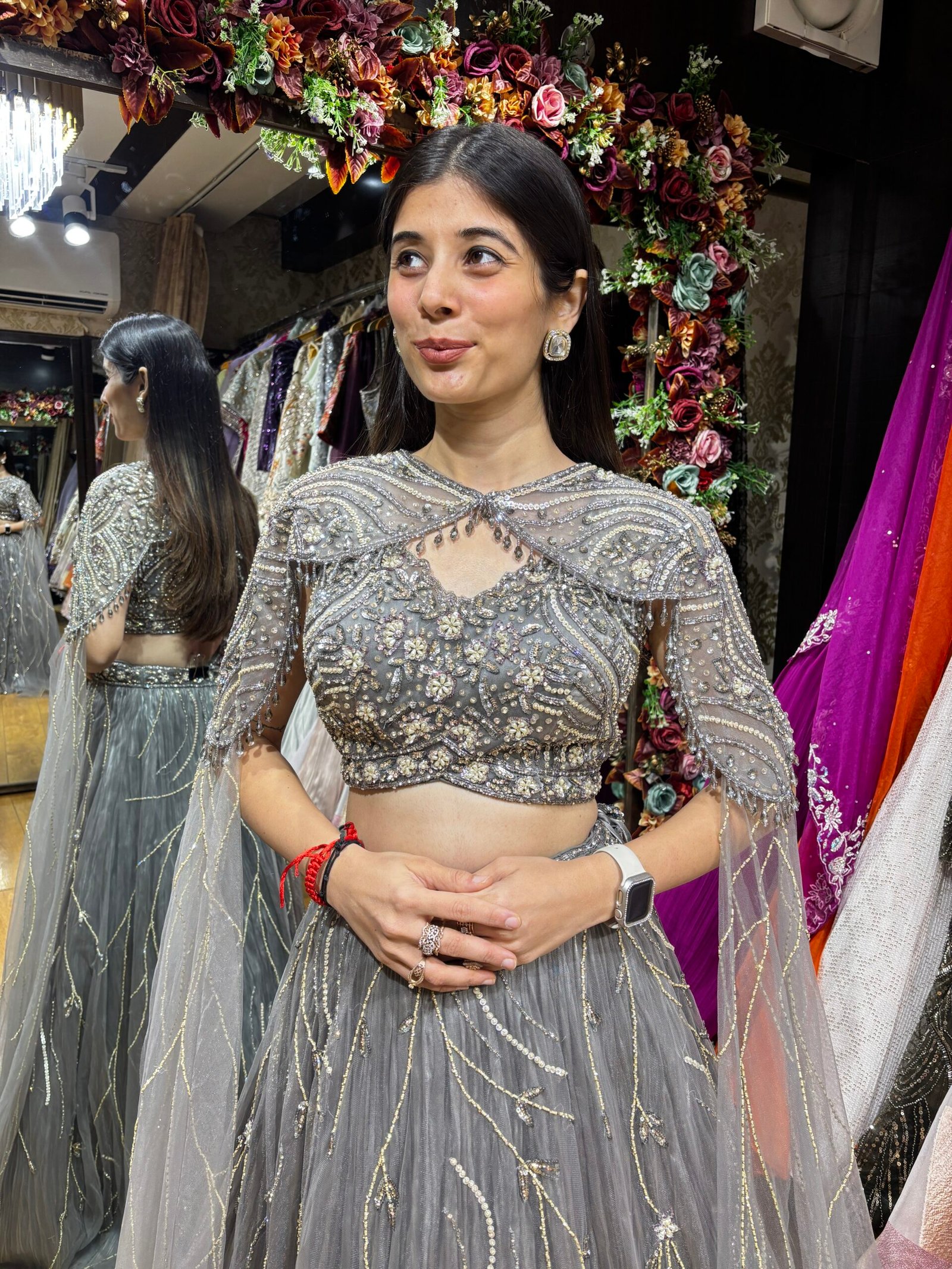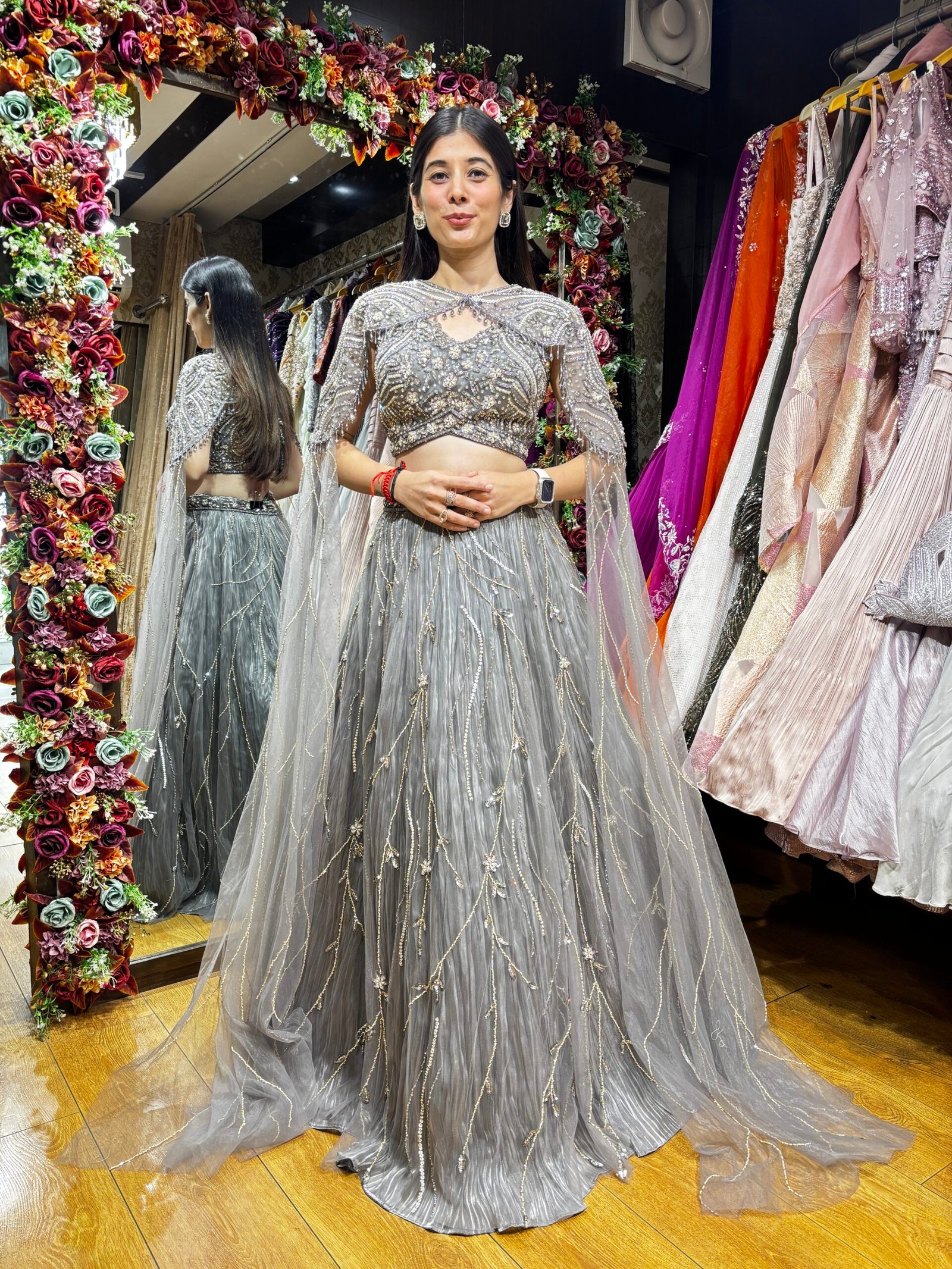 RIWAYAT HEAVY GRAY LENGHA CHOLI WITH CAPE SET