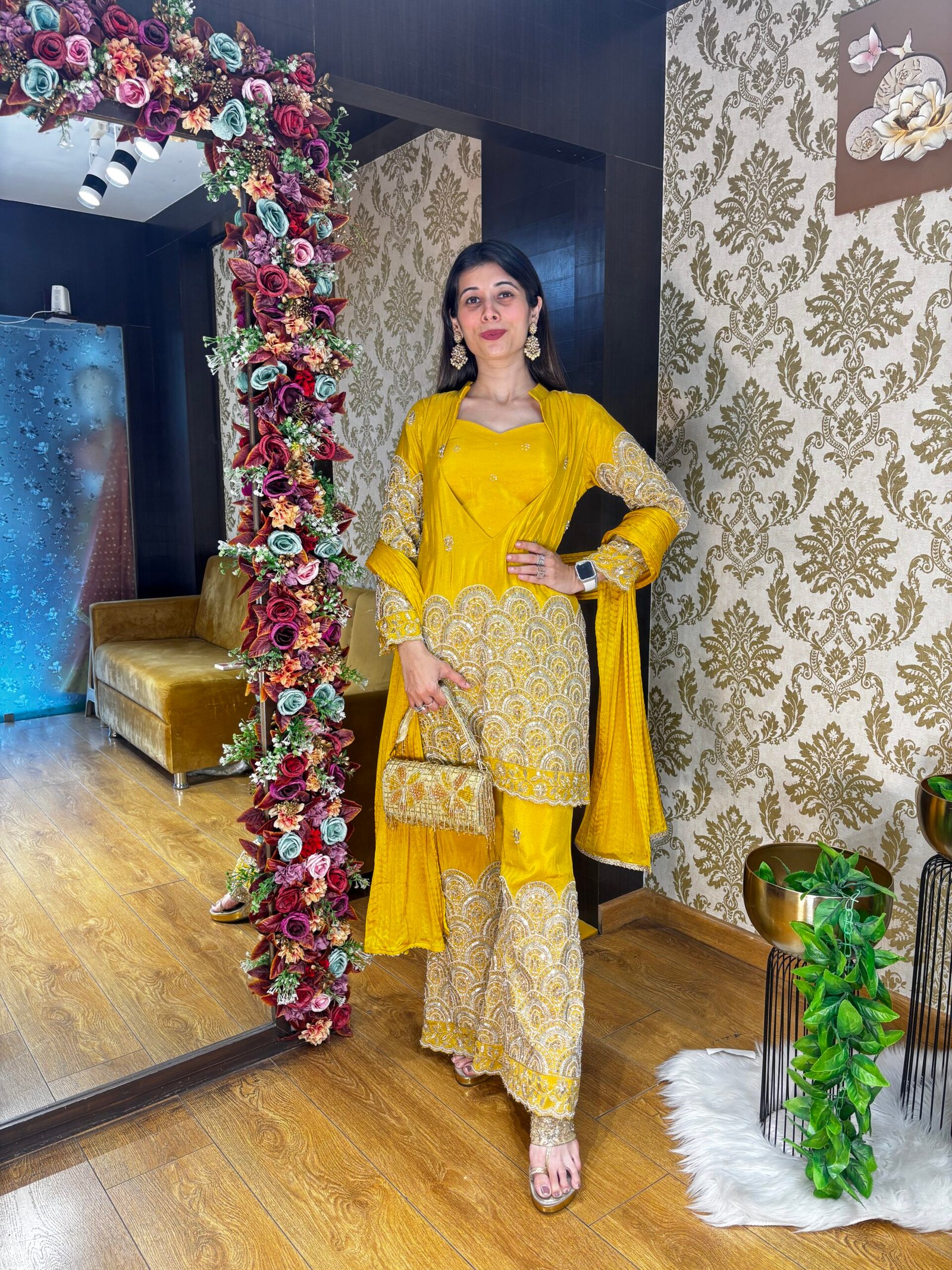 Be the first to review “ROYAL YELLOW HEAVY SHARARA SET WITH DUPATTA” Cancel reply