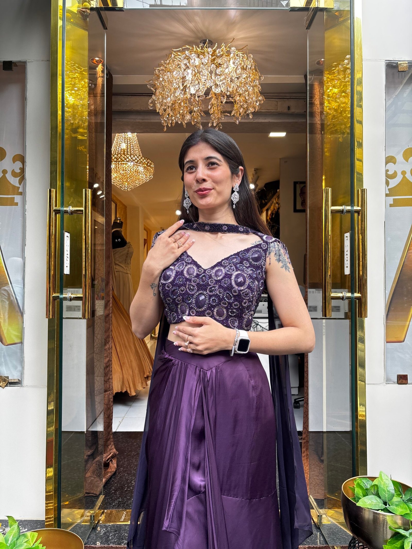 Be the first to review “RUHANI WINESH PURPLE FISH CUT SKIRT WITH DRAMATIC STYLE PALLU” Cancel reply