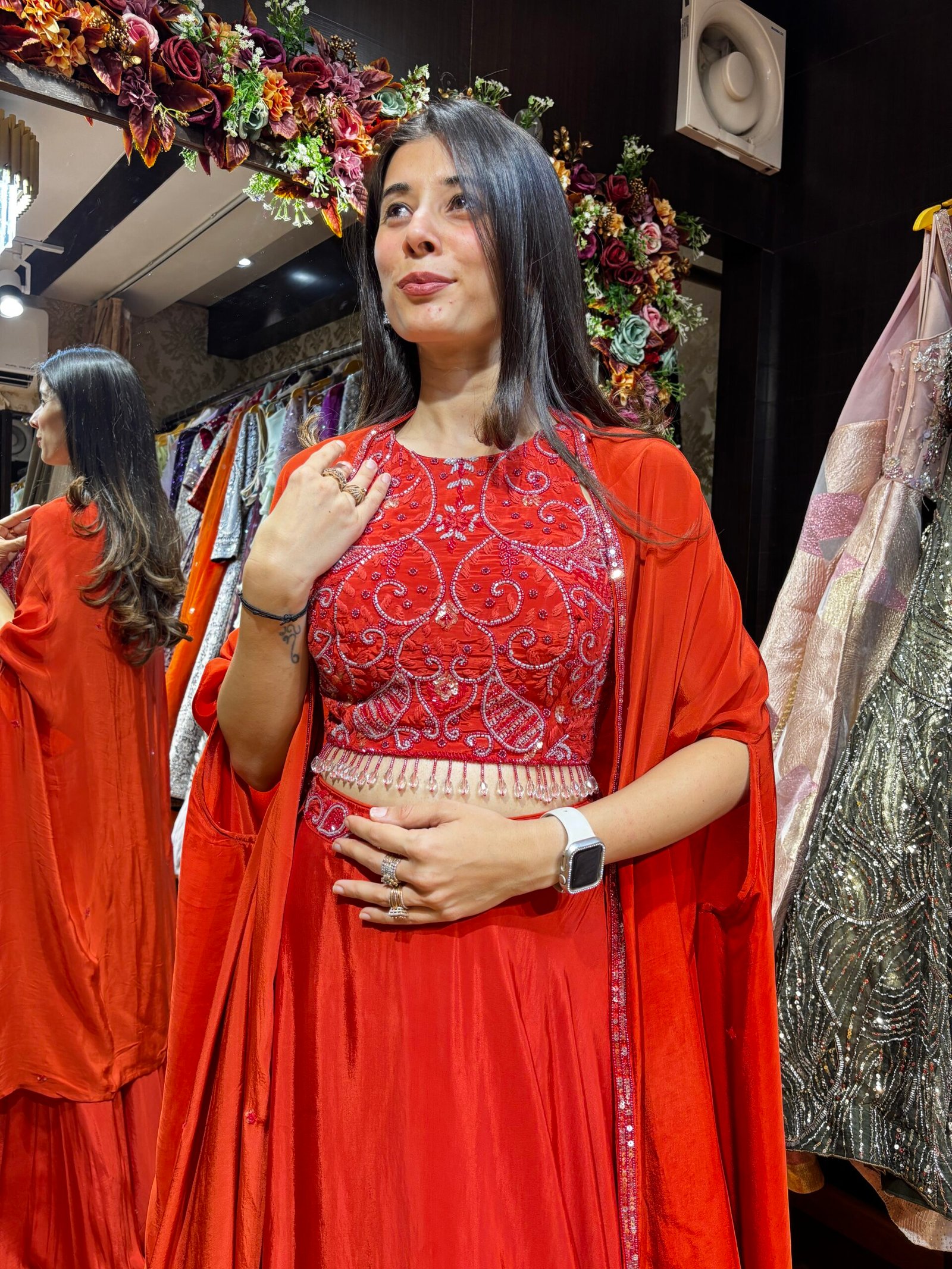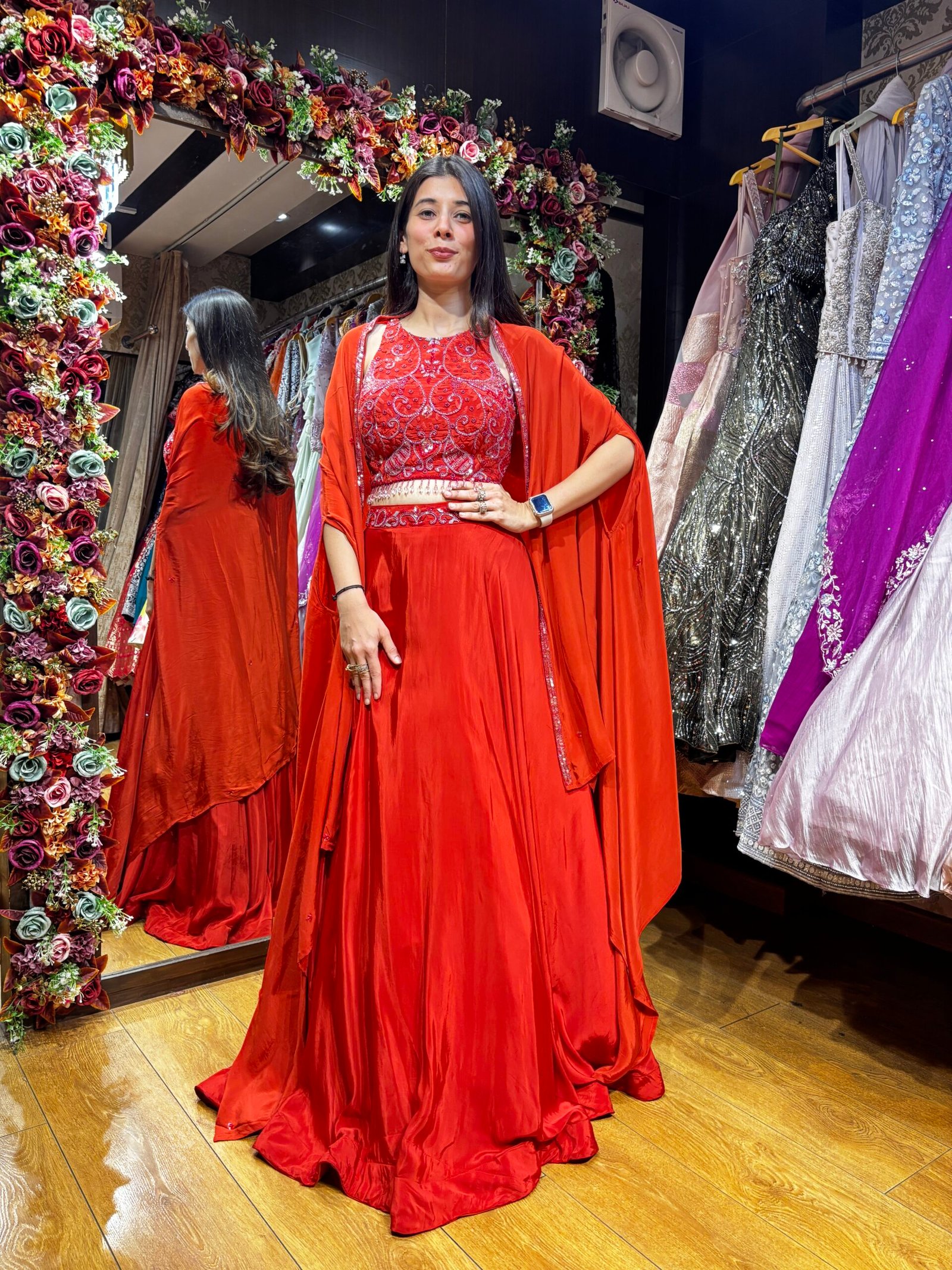 Be the first to review “RUST TANGERINE LENGHA CHOLI WITH CAPE SET” Cancel reply