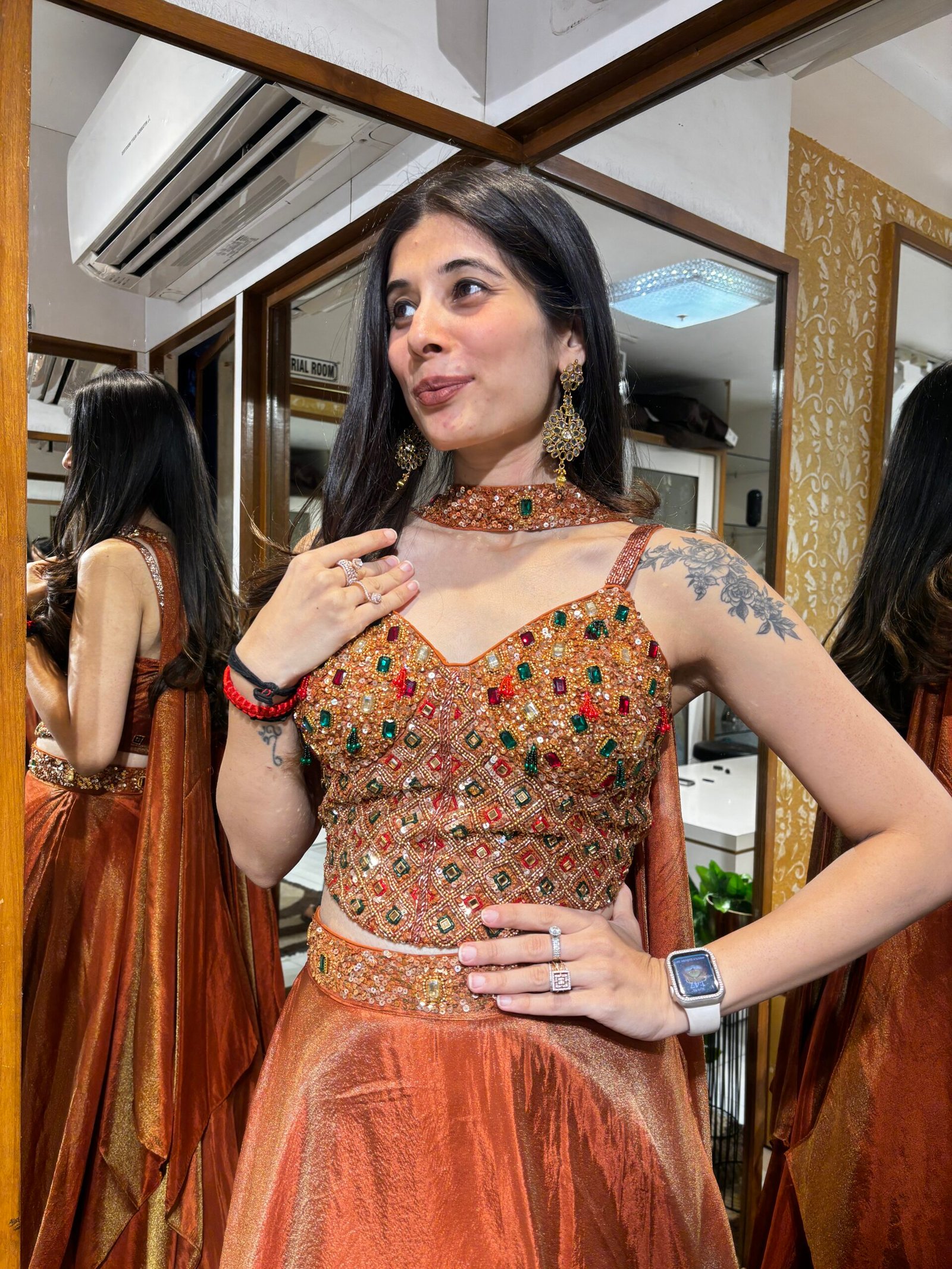 RUSTIC STYLISH JEWEL HALTER NECK LENGHA CHOLI WITH DUPATTA