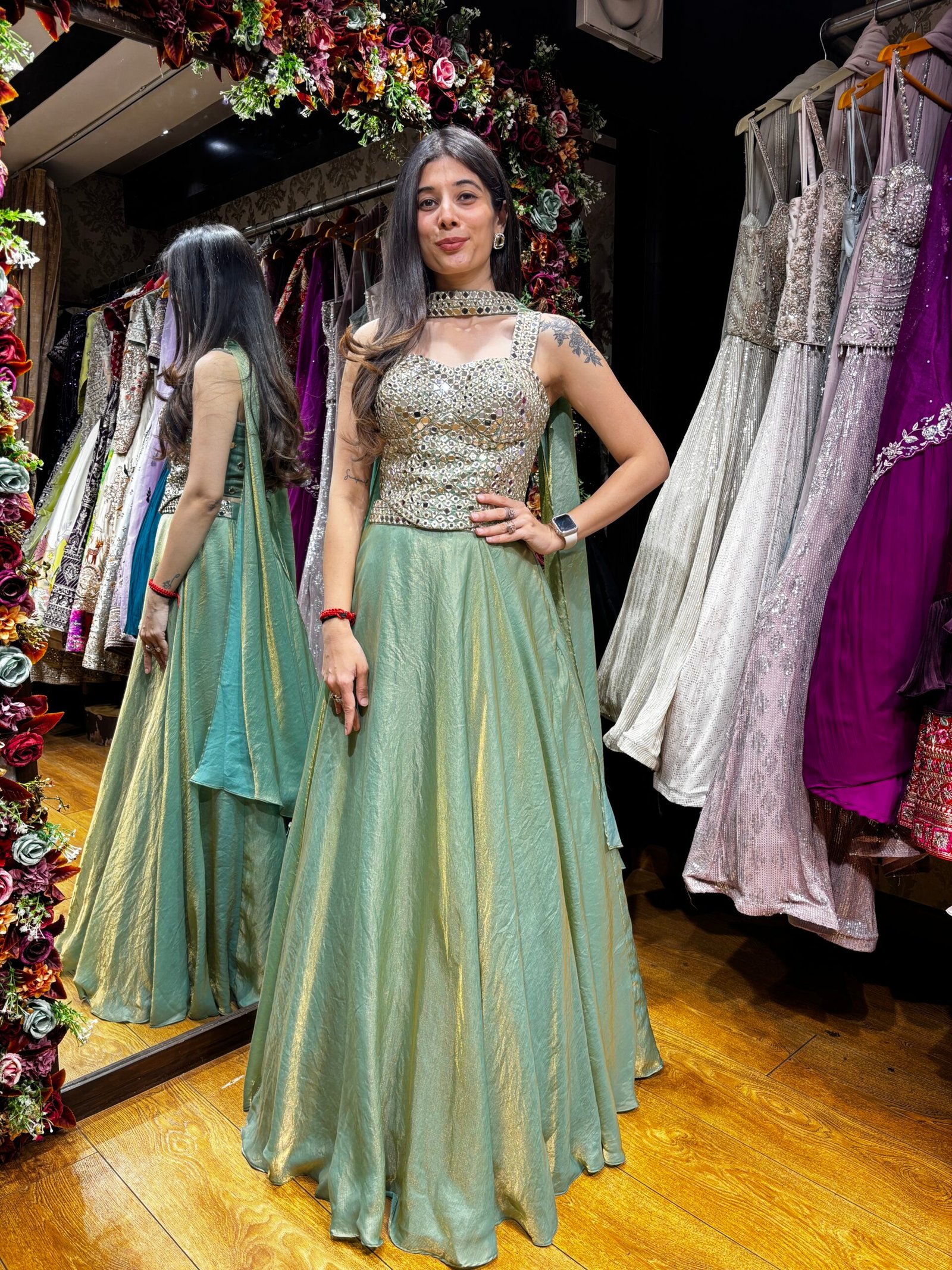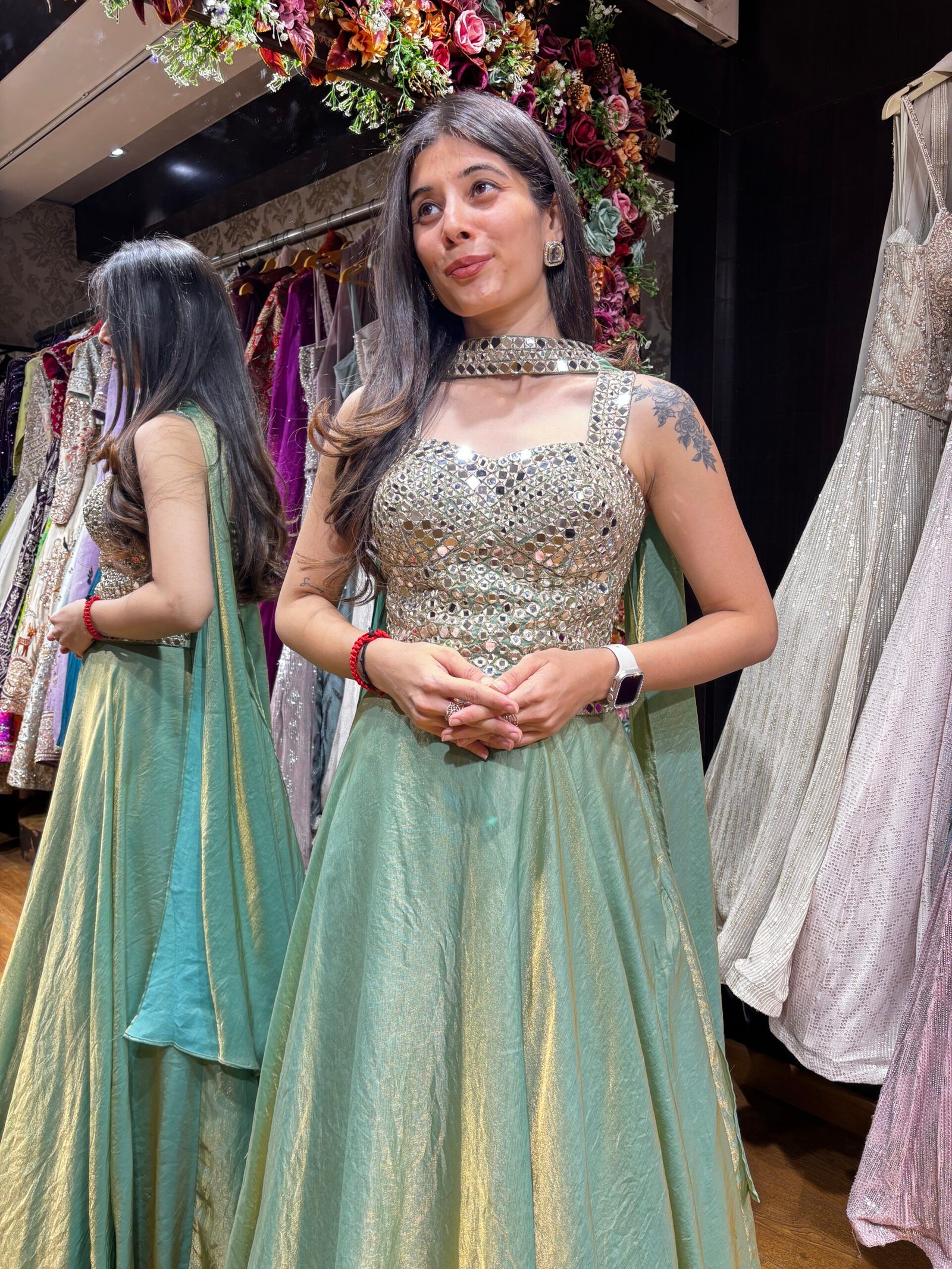 SAGE BLUE ZEHRA MIRROR LENGHA CHOLI