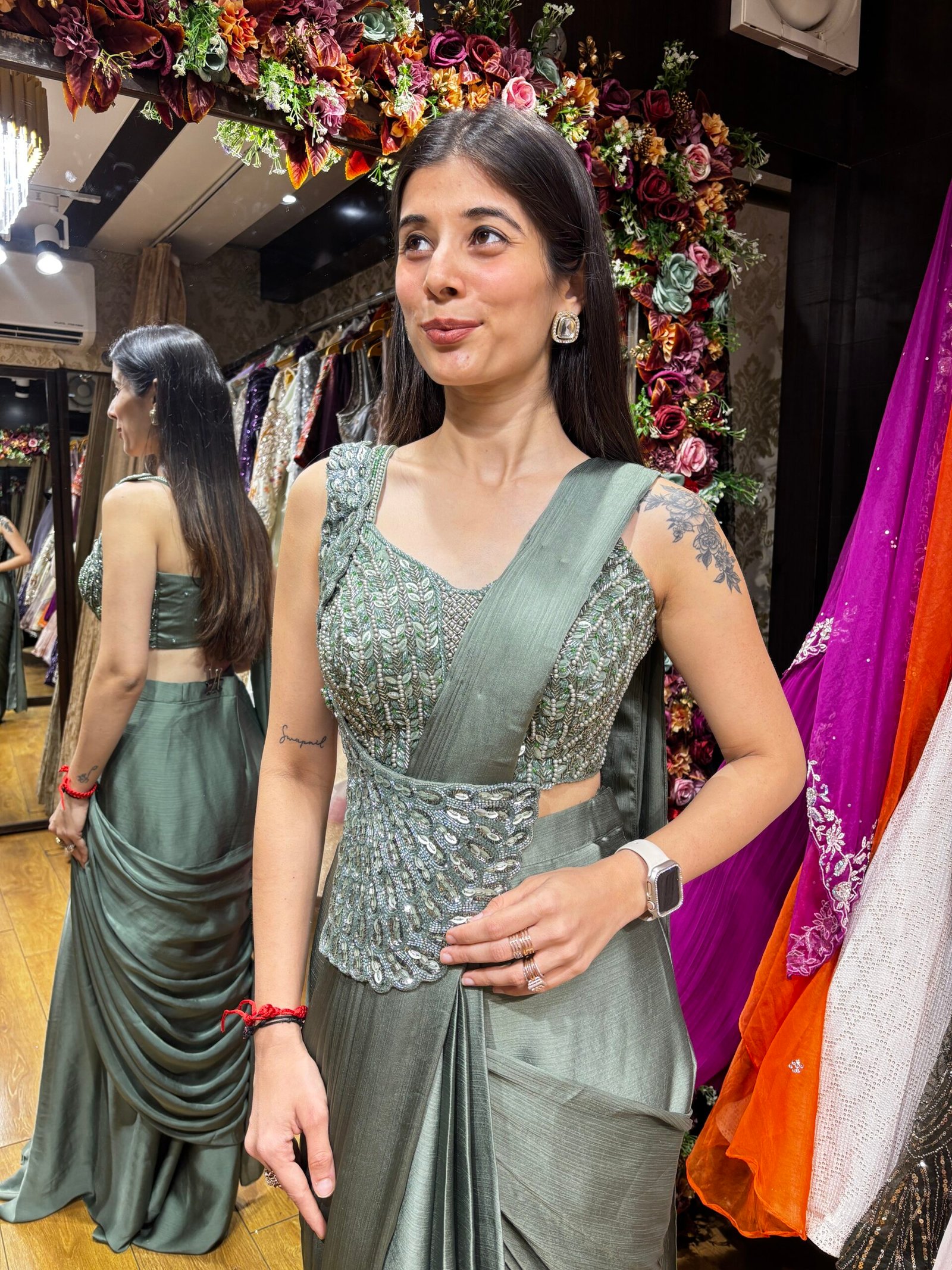Be the first to review “SAGE GREEN MERMAID UNIQUE DRAPE SAREE” Cancel reply