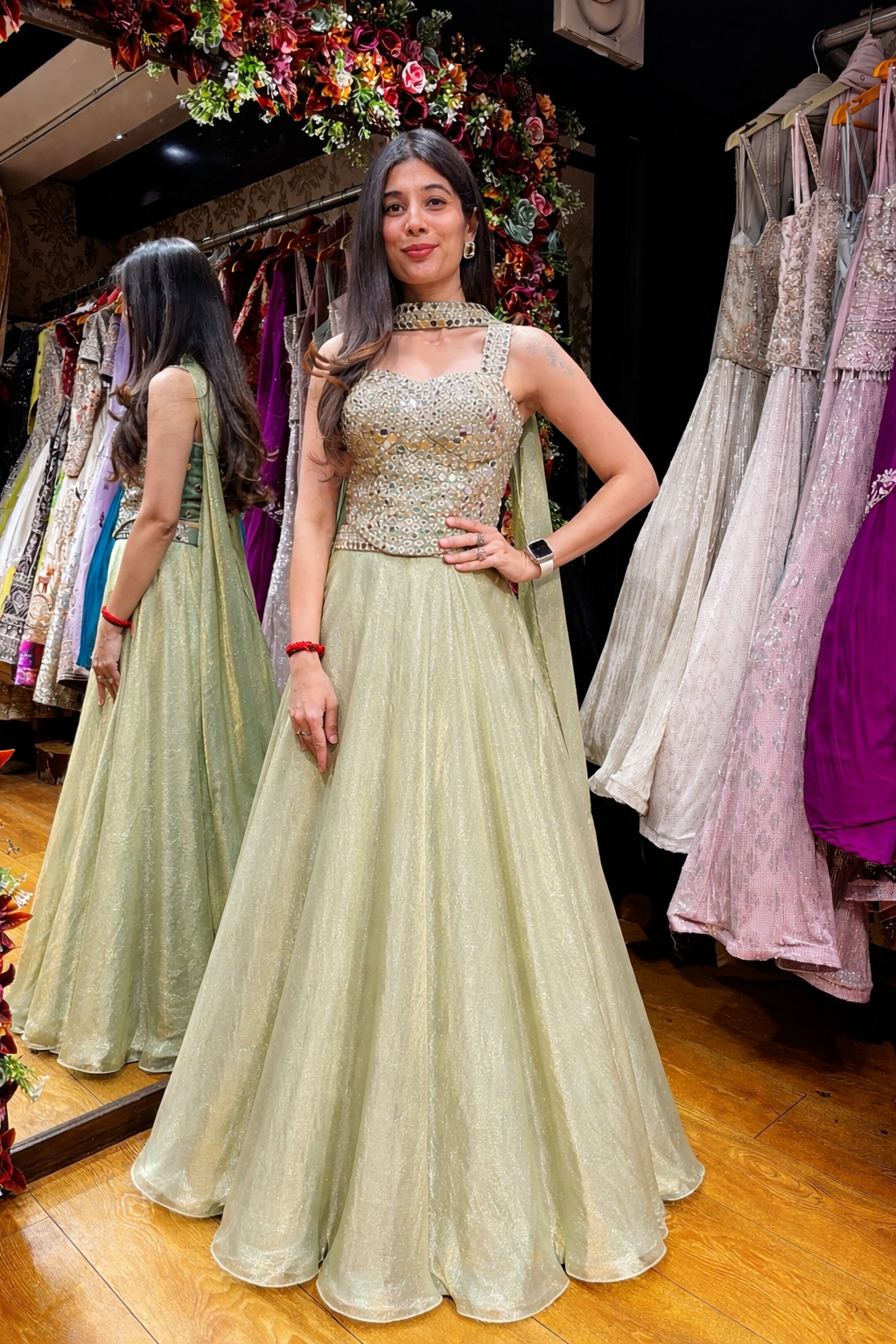 SAGE GREEN ZEHRA MIRROR LENGHA CHOLI