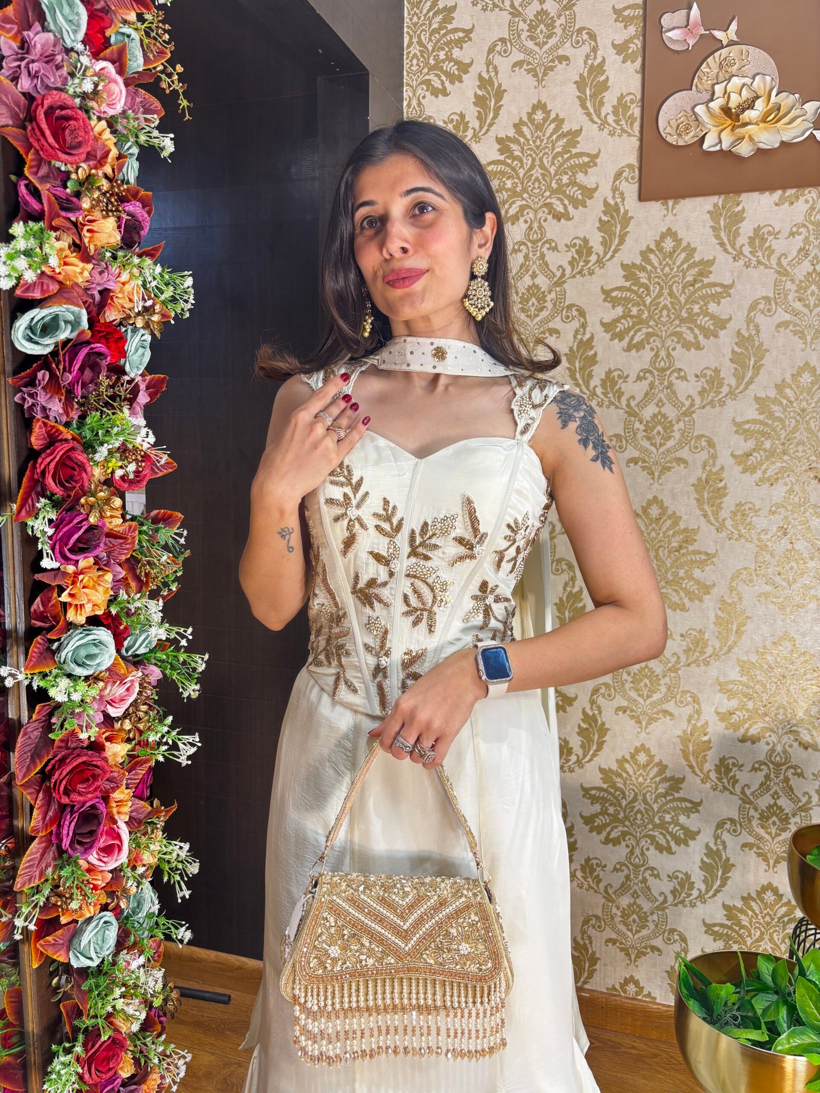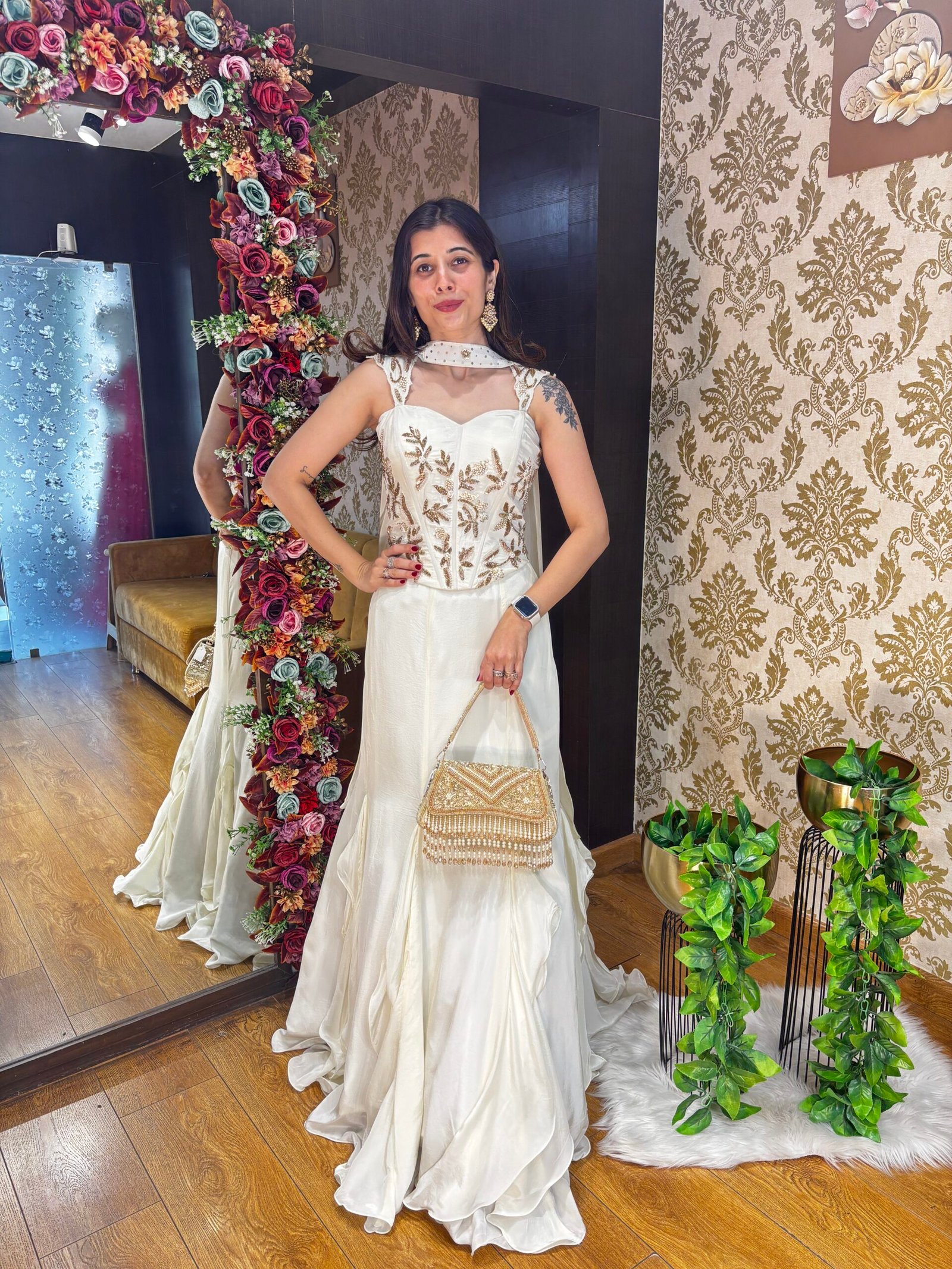 SHAFA FISH CUT SKIRT WITH CORSET BLOUSE-WHITE