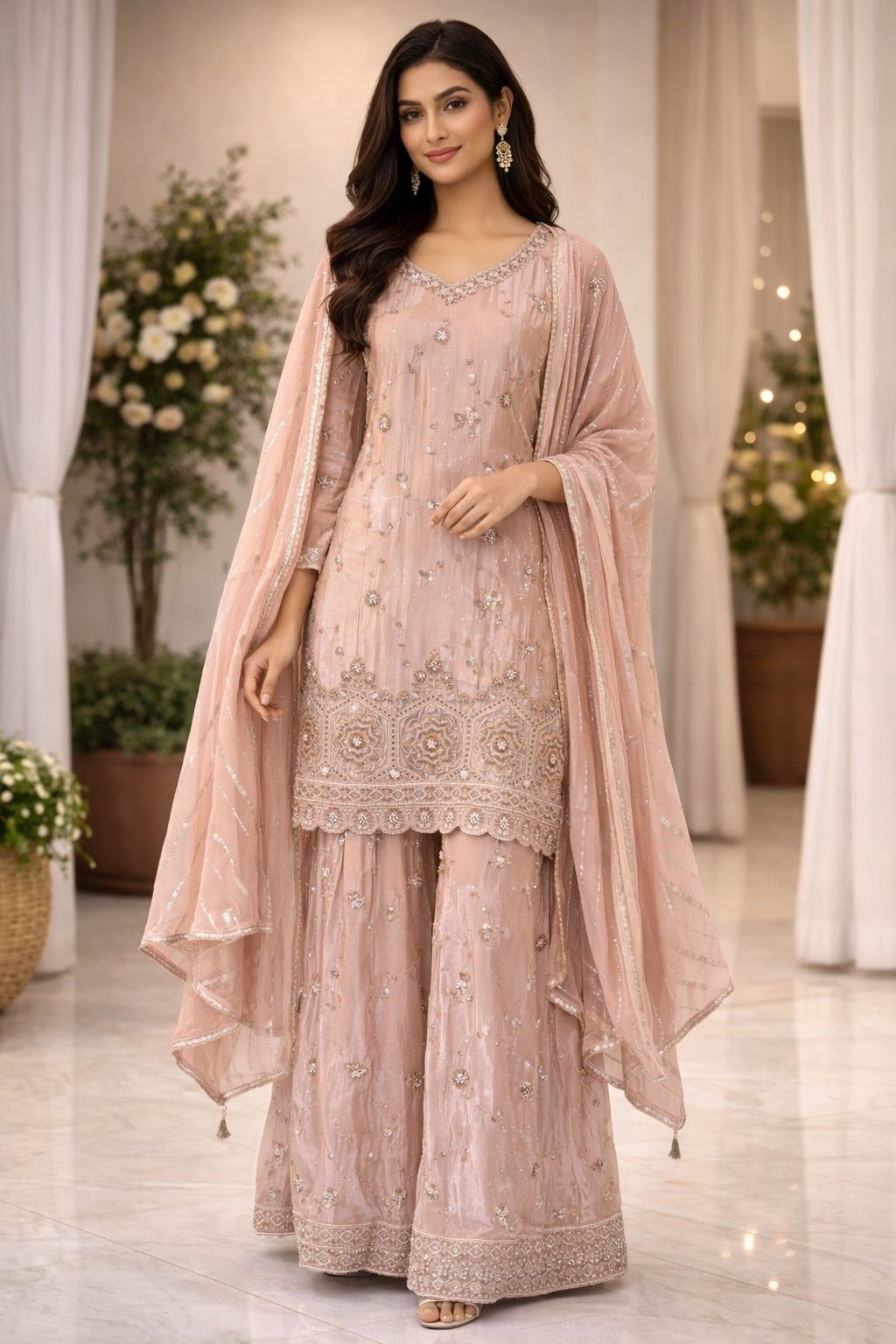 SHEENA HEAVY SHARARA SUIT WITH DUPATTA-BLUSH PINK