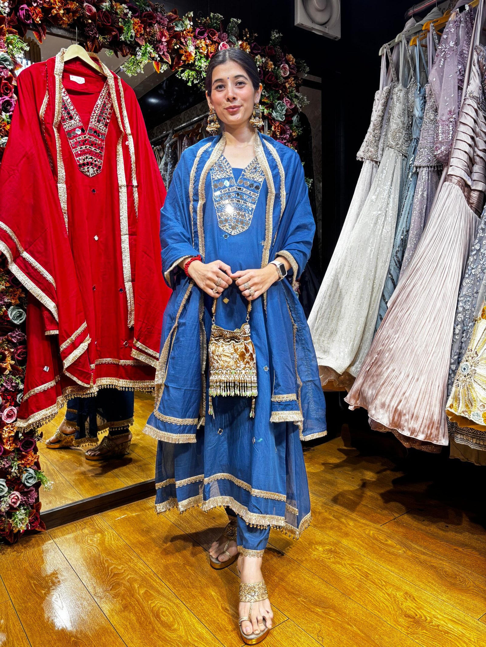 SHEESH NEEL BLUE MIRROR HEAVY SUIT WITH DUPATTA