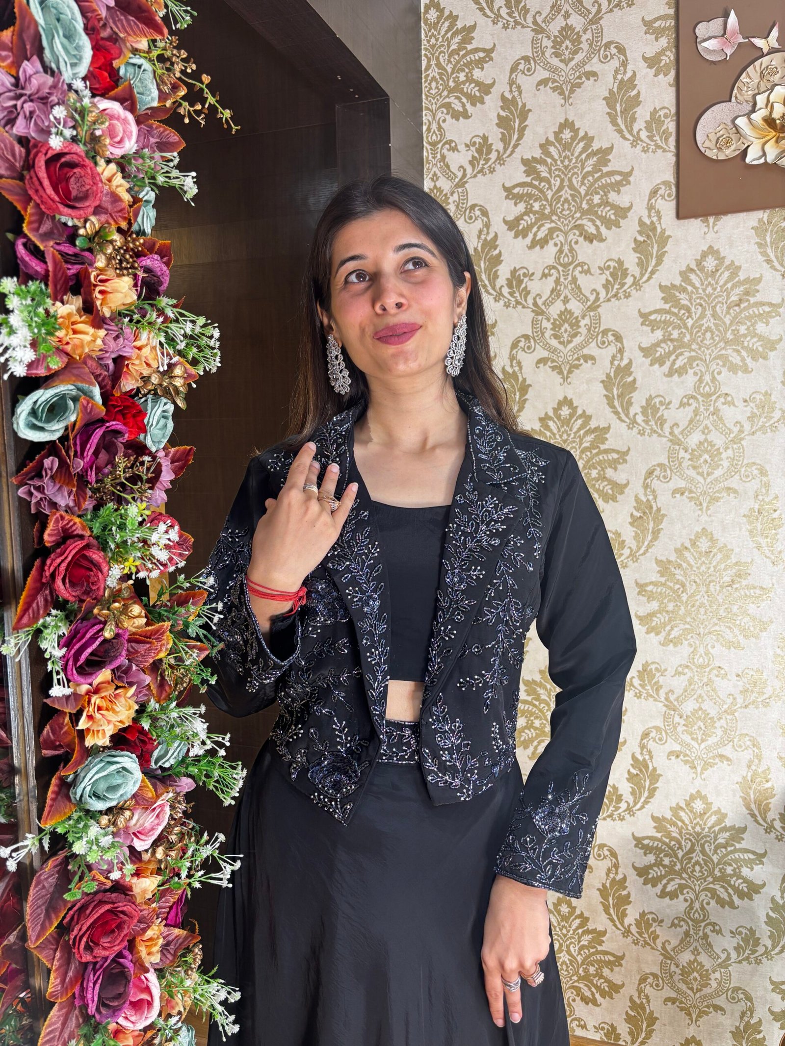 Be the first to review “SIHANA STYLISH BLACK SKIRT BLOUSE WITH HEAVY BLAZER JACKET” Cancel reply