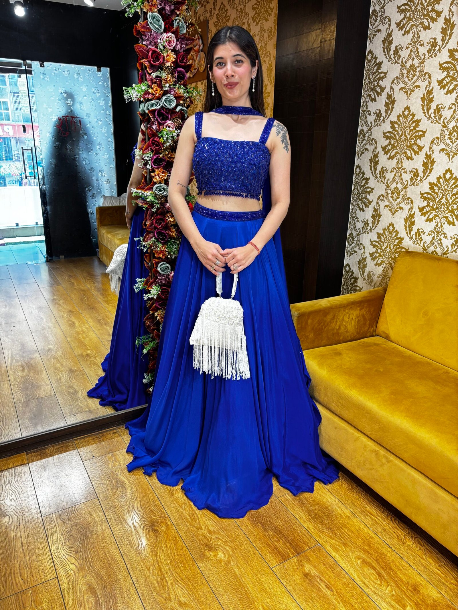 Be the first to review “STUNNING CREPE SKIRT TOP WITH NECK BELT DUPATTA-ELECTRIC BLUE” Cancel reply