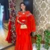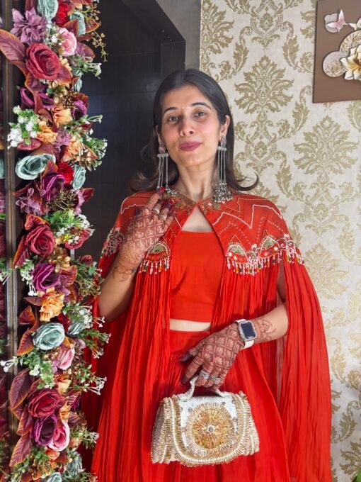 Be the first to review “STUNNING ORANGE SKIRT BUSTER WITH DRAMATIC CAPE” Cancel reply