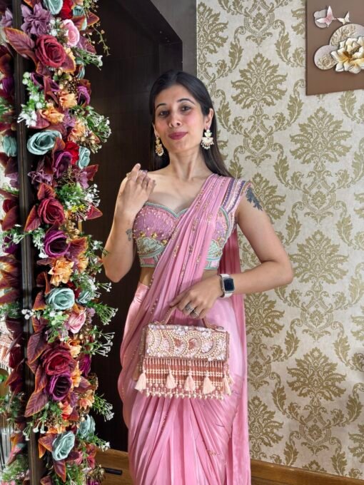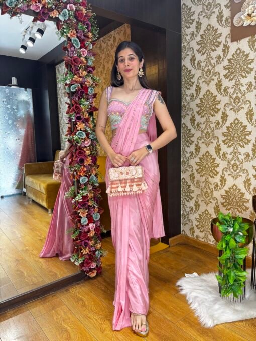 Be the first to review “STYLISH BABY PINK DRAMATIC BLOUSE DRAPE SAREE” Cancel reply