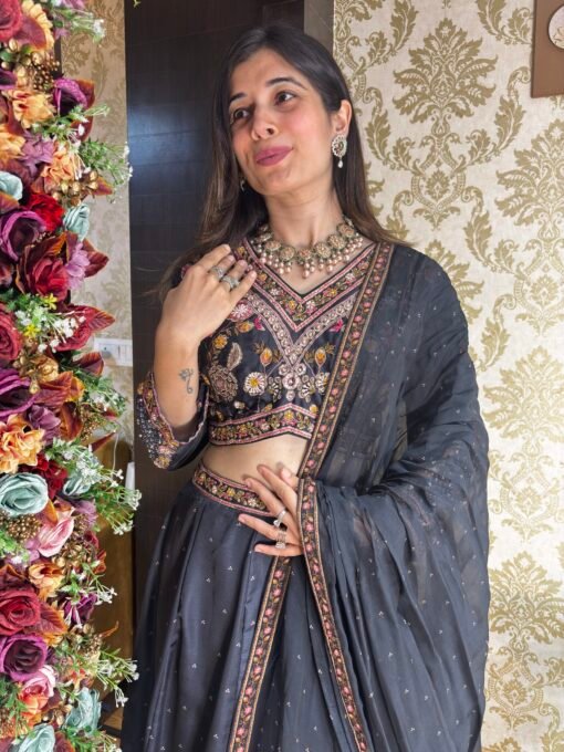 Be the first to review “STYLISH KOLKATA WORK SILK LENGHA CHOLI WITH DUPATTA-BLACK” Cancel reply