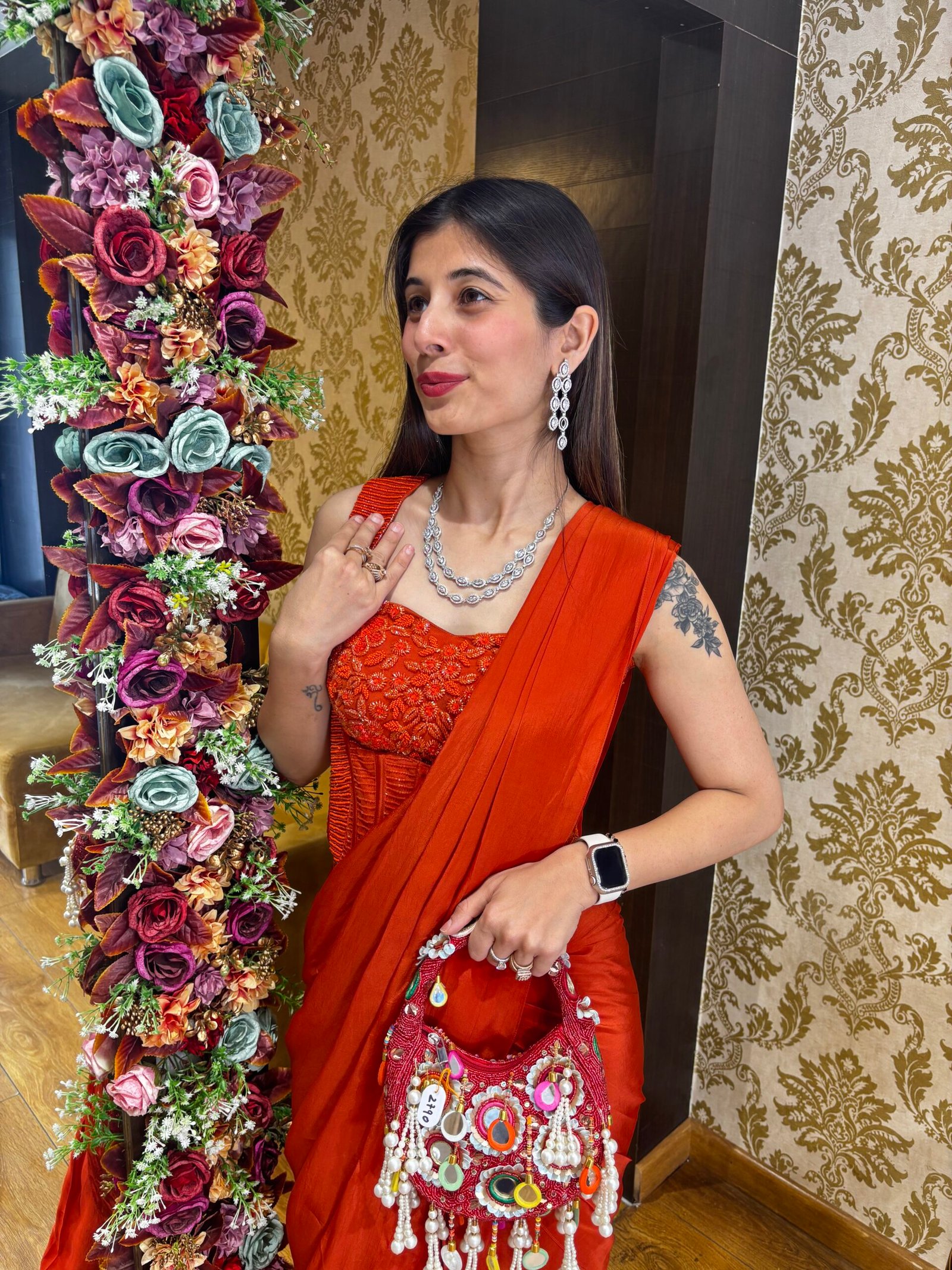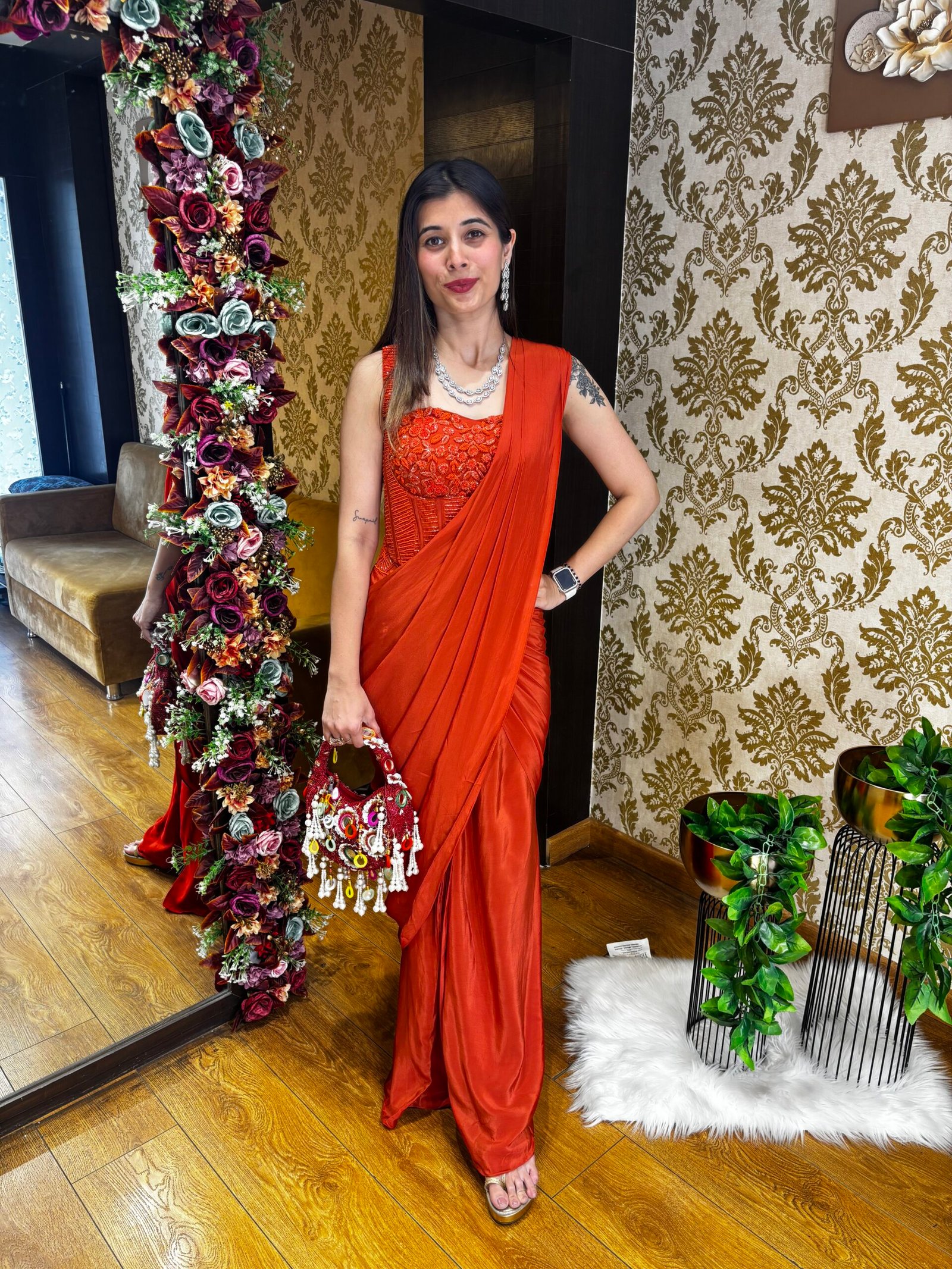 Be the first to review “STYLISH ORANGE CO-ORD SET DRAPE SAREE” Cancel reply