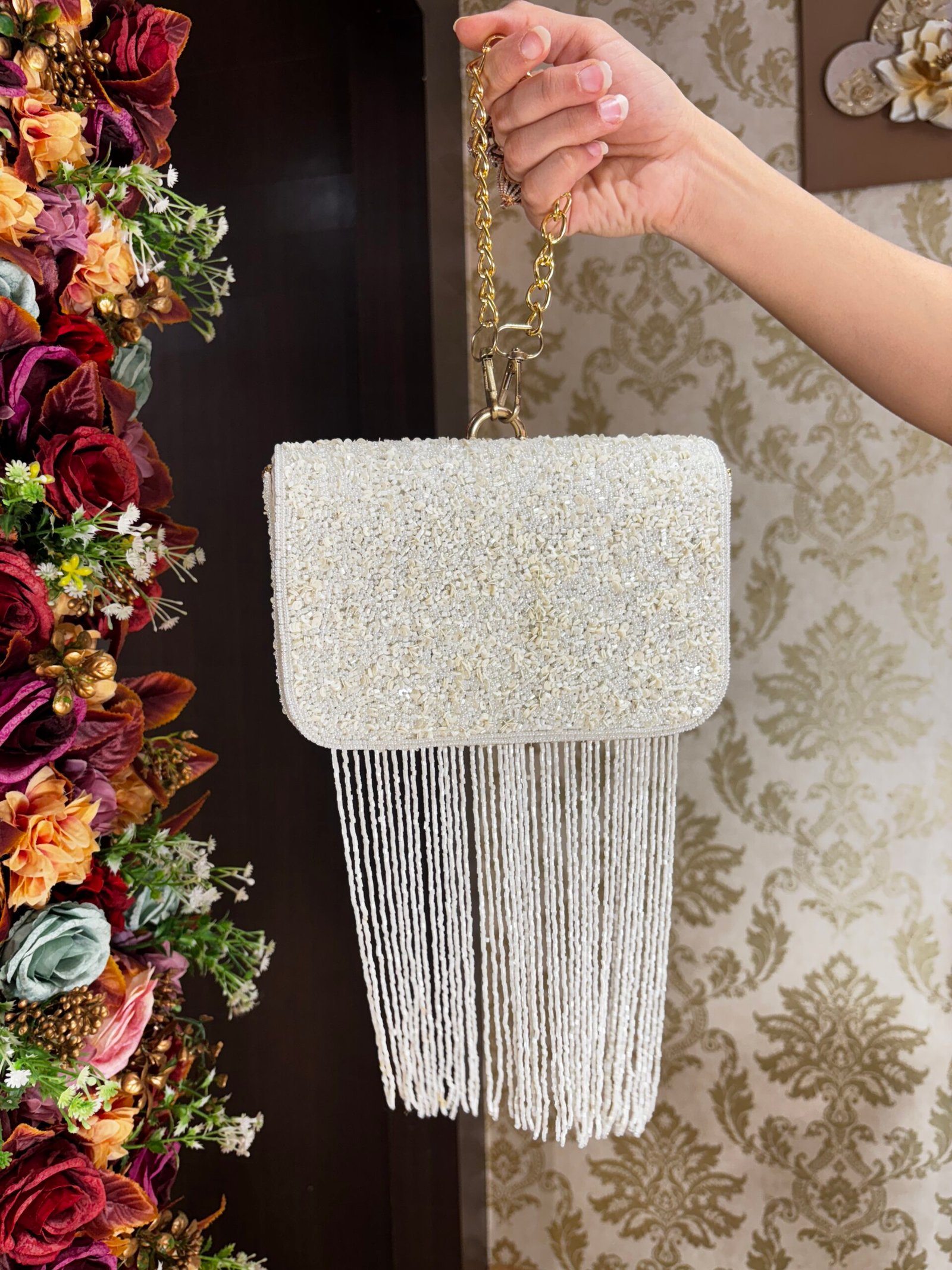 Be the first to review “WHITE LONG TASSEL CLUTCH BAG WITH HEAVY HANDLE” Cancel reply