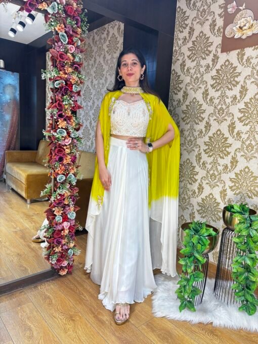 Be the first to review “WHITE YELLOW OMBRE CAPE STYLE STYLISH INDO WESTERN” Cancel reply