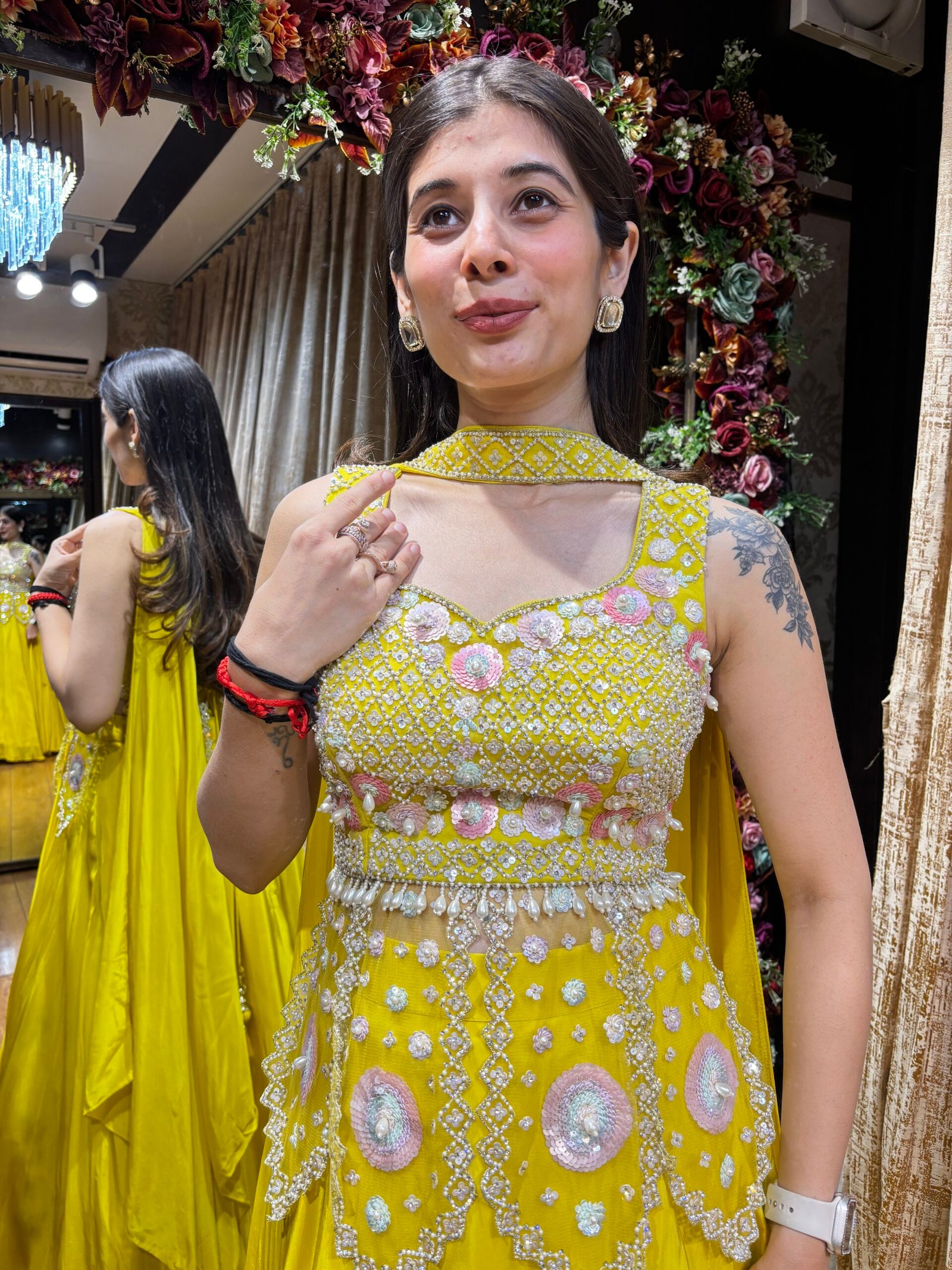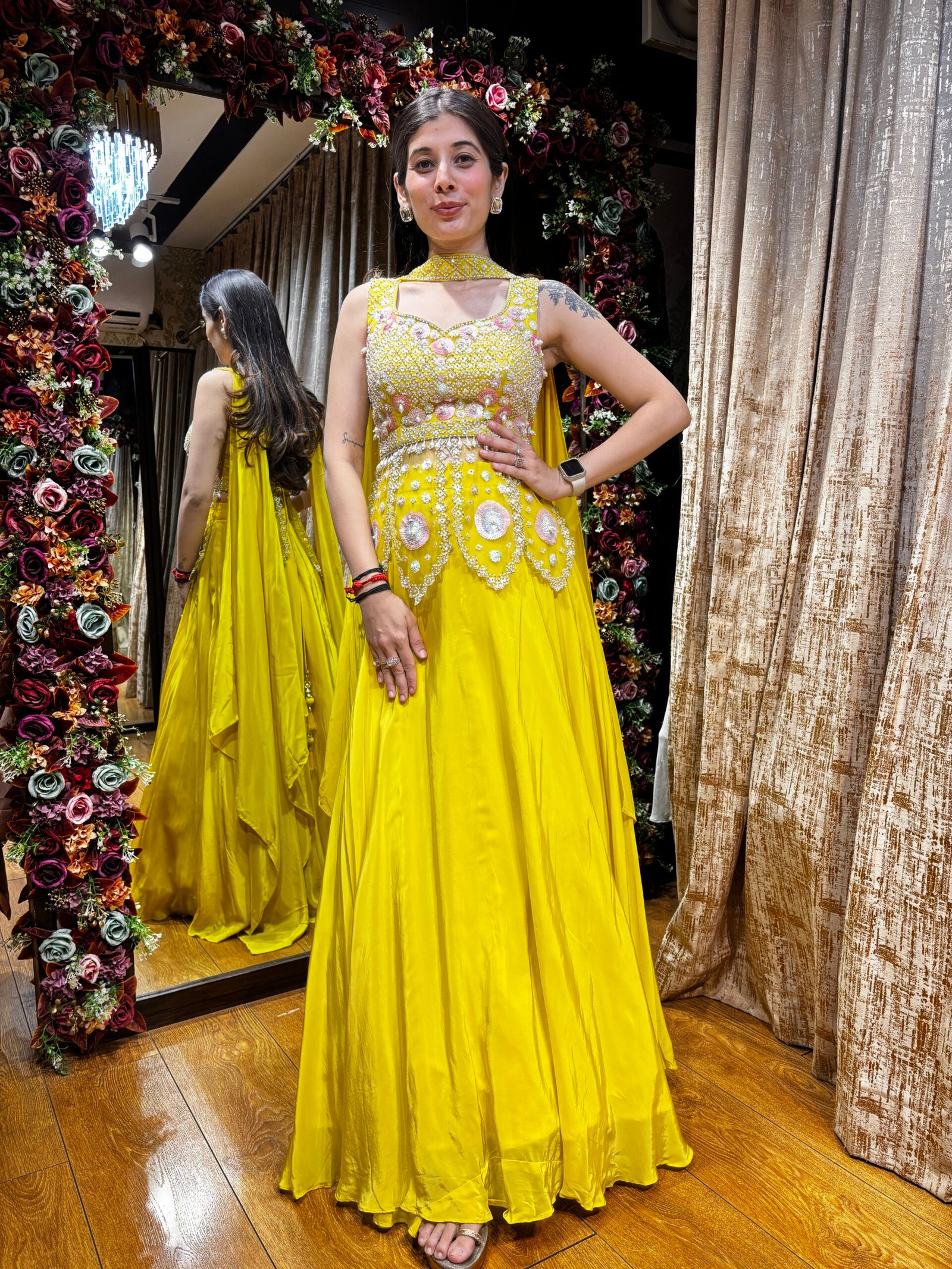 ZEENAT YELLOW PEPLUM STYLE BLOUSE WITH SKIRT & DUPATTA